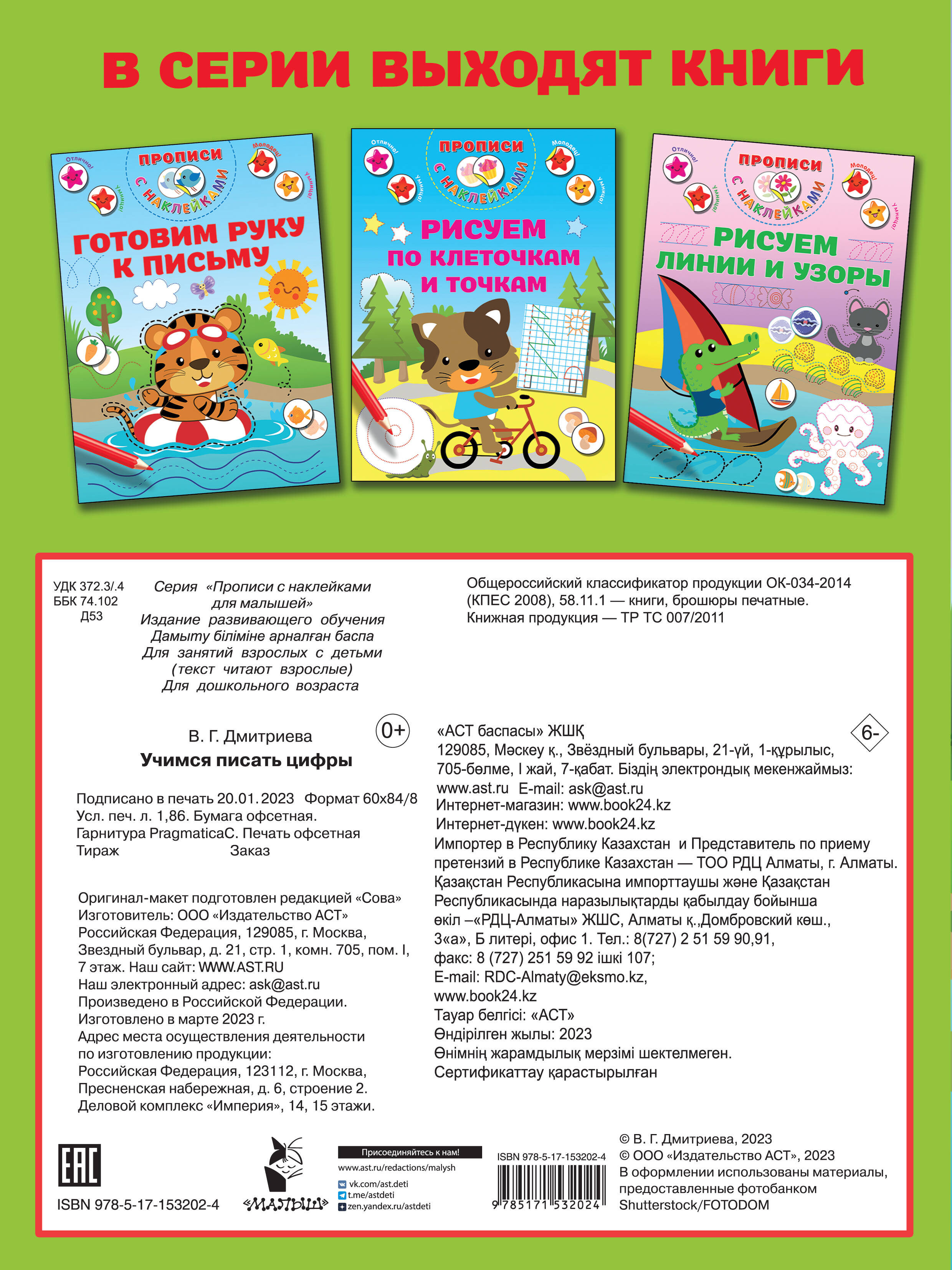 Одна из самых важных задач родителей - подготовить ребёнка к школе, показать, что обучение может быть весёлым и увлекательным занятием. Стоит начать с изучения цифр - это фундамент, основа для дальнейшего изучения математики. «Учимся писать цифры» - это увлекательный тренажёр с яркими наклейками и весёлыми заданиями! Книга идеально подходит для освоения счёта, подготовки руки к письму, улучшения координации движений и развития мелкой моторики ребёнка. Такие прописи станут верным помощником в знакомстве с математикой, а наклейки сделают урок запоминающимся!| Издательство | ИЗДАТЕЛЬСТВО "АСТ" |