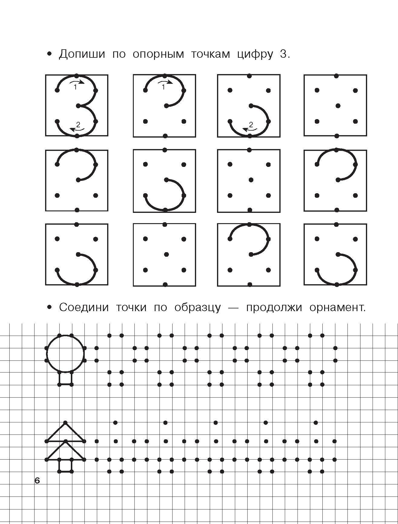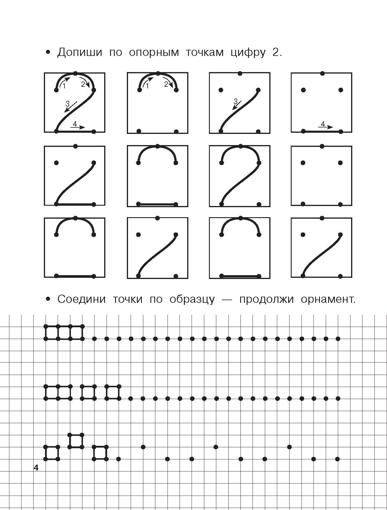 Учимся писать цифры по опорным точкам. 4-5 лет