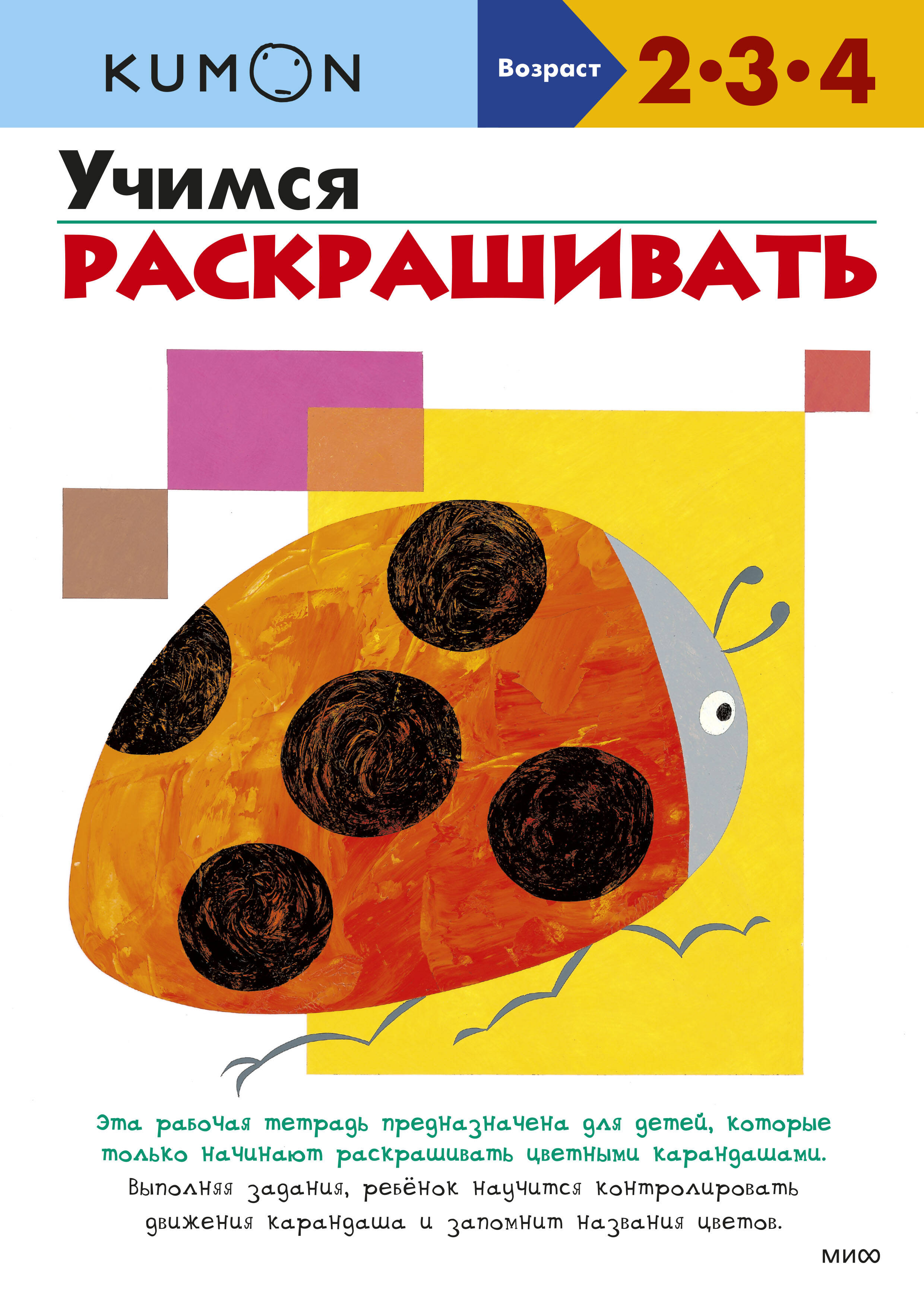 Тетрадь направлена на развитие мелкой моторики. Раскрашивая ограниченные области на картинках, ваш ребенок будет учиться проводить карандашом линии и контролировать движение руки. Кроме того, эта рабочая тетрадь поможет запомнить названия цветов и форм, разовьет творческое мышление и художественные способности ребенка. Все пособия KUMON используют принцип "от простого к сложному". В первых заданиях этой тетради ребёнку нужно будет выбрать восковой карандаш нужного цвета и закрасить им одну белую область простой формы на рисунке. Постепенно количество областей для раскрашивания будет увеличиваться, а их форма усложняться. В последних заданиях ребёнок должен будет сам выбрать карандаши для раскрашивания. На обороте каждого листа ребёнку предстоит проводить карандашом линии, не задевая картинок. Для кого эта тетрадь? Тетрадь предназначена для занятий с детьми 2-4 лет. Её могут использовать как педагоги в детских садах, клубах и центрах развития, так и родители для работы дома.| Издательство | Манн, Иванов и Фербер |