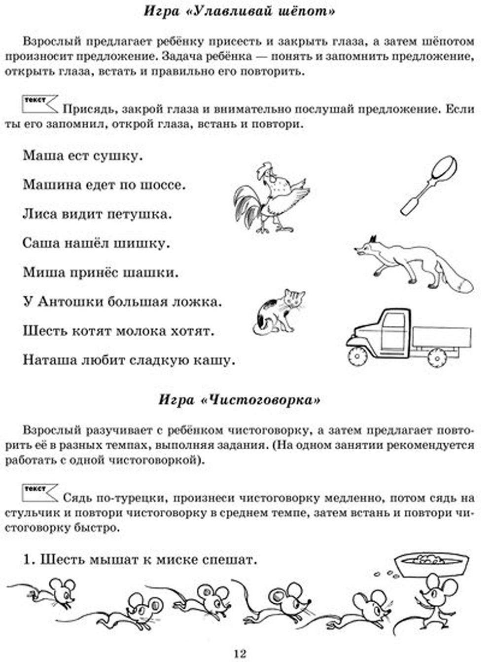 В книге предложены подвижные логопедические игры на различение звуков, которые дети часто смешивают в речи: [с] и [ш], [з] и [ж], [с'] и [щ'], [т'] и [ч'], [л] и [р]. Лучше всего дети учатся в игре. Незаменимы игры и в логопедических занятиях, особенно подвижные. Просто повторять за логопедом или мамой слова - утомительно для ребёнка, а значит, неэффективно. В нашей книге задания на дифференциацию смешиваемых звуков связаны с выполнением различных движений, что позволит не только закрепить навыки различения звуков, но и поддерживать физическую активность ребёнка. необычными заданиями - это позволяет поддерживать одновременно и интерес ребенка и контроль за усвоением знаний. Для детей и родителей, педагогов и логопедов