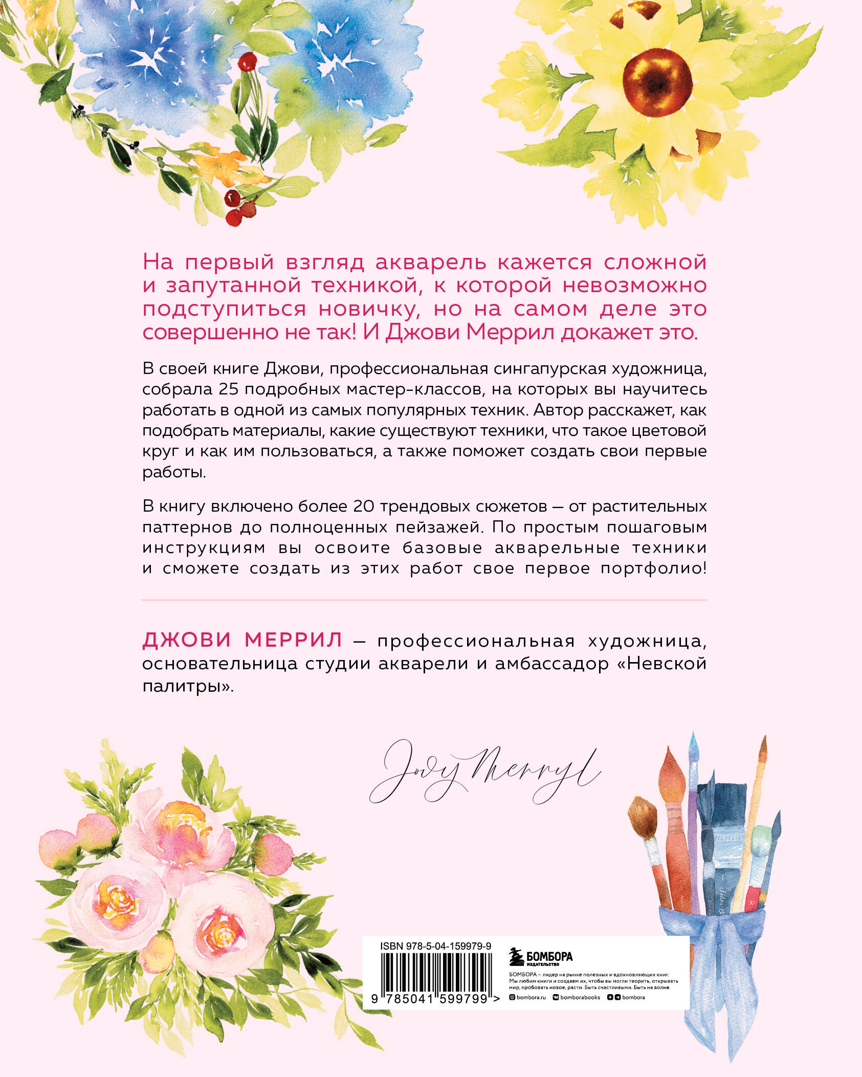 Автор книги Джови Меррил - профессиональная художница, основательница собственной студии акварели и амбассадор «Невской палитры», а ее видео на YouTube насчитывают сотни просмотров от подписчиков со всего мира.