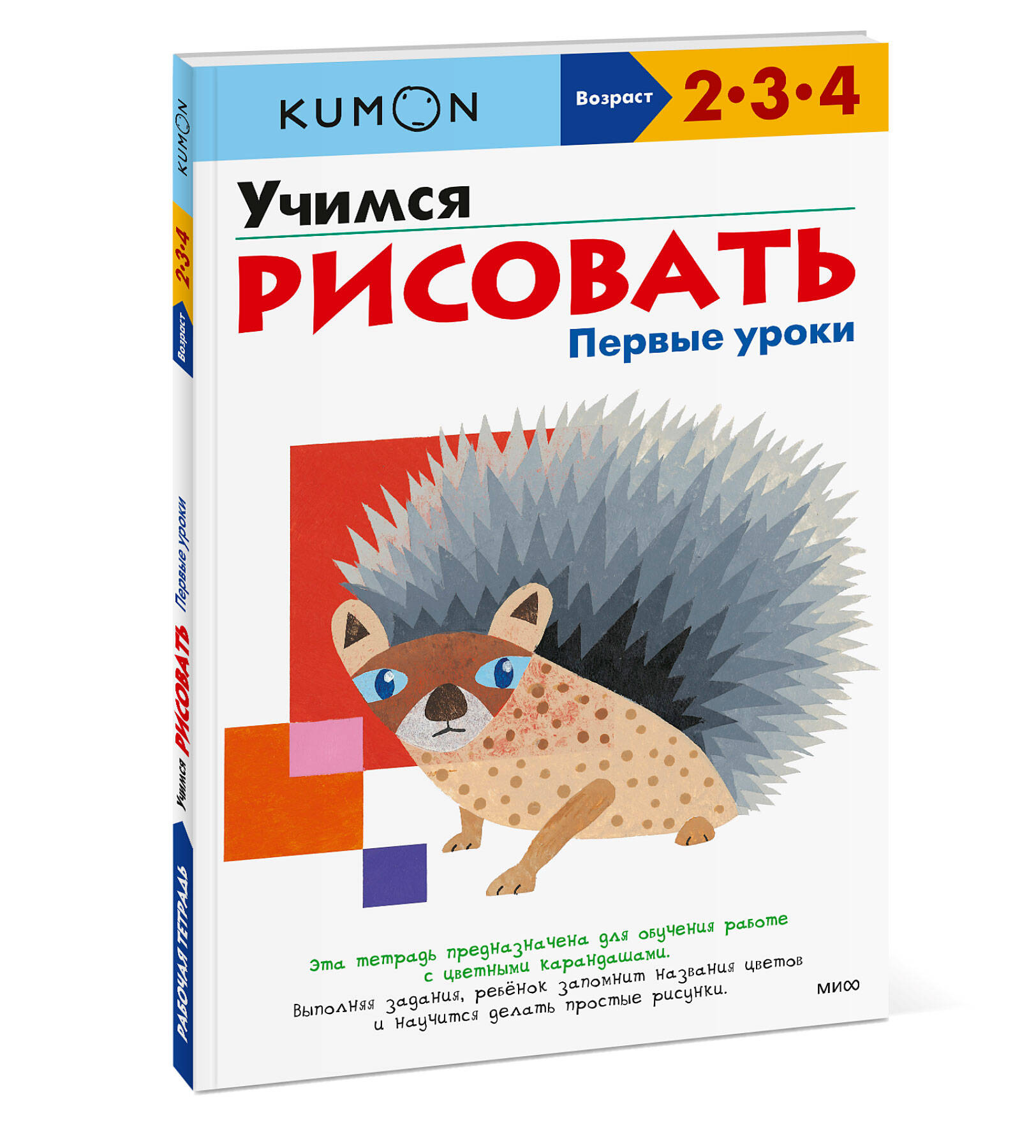Тетрадь подойдет малышам, которые впервые берут в руки карандаши. Она направлена на развитие мелкой моторики и навыка работы с карандашом. В будущем это поможет ребёнку быстрее научиться писать. С помощью рабочей тетради "Kumon. Учимся рисовать. Первые уроки" ребёнок: - научится правильно держать карандаш; - запомнит названия цветов; - будет развивать мелкую моторику; - сможет создавать простые рисунки. Задания в тетради даны по принципу от простого к сложному. Они разделены на три блока: Каляки-маляки (№1-6), в которых ребёнок будет рисовать так, как ему хочется. Цель упражнений - увлечь малыша, познакомить его с карандашами и вызвать интерес к занятиям. Линии (№ 7-30). Малыш потренируется проводить линии разной сложности: прямые, ломаные, дуги, спирали, петли. Упражнения в этом разделе направлены на развитие навыка работы с карандашом. Постепенно ребёнок привыкает держать его правильно и проводит всё более сложные линии. В будущем это поможет ему научиться писать. Дорисуй картинку (№ 31-39). В этом разделе ребёнок дорисовывает недостающие детали на изображениях. Сначала ему будут рекомендоваться цвета, которые надо использовать, а затем малыш сможет проявить фантазию и творческие способности. В последнем задании ребёнок нарисует то, что захочет сам.