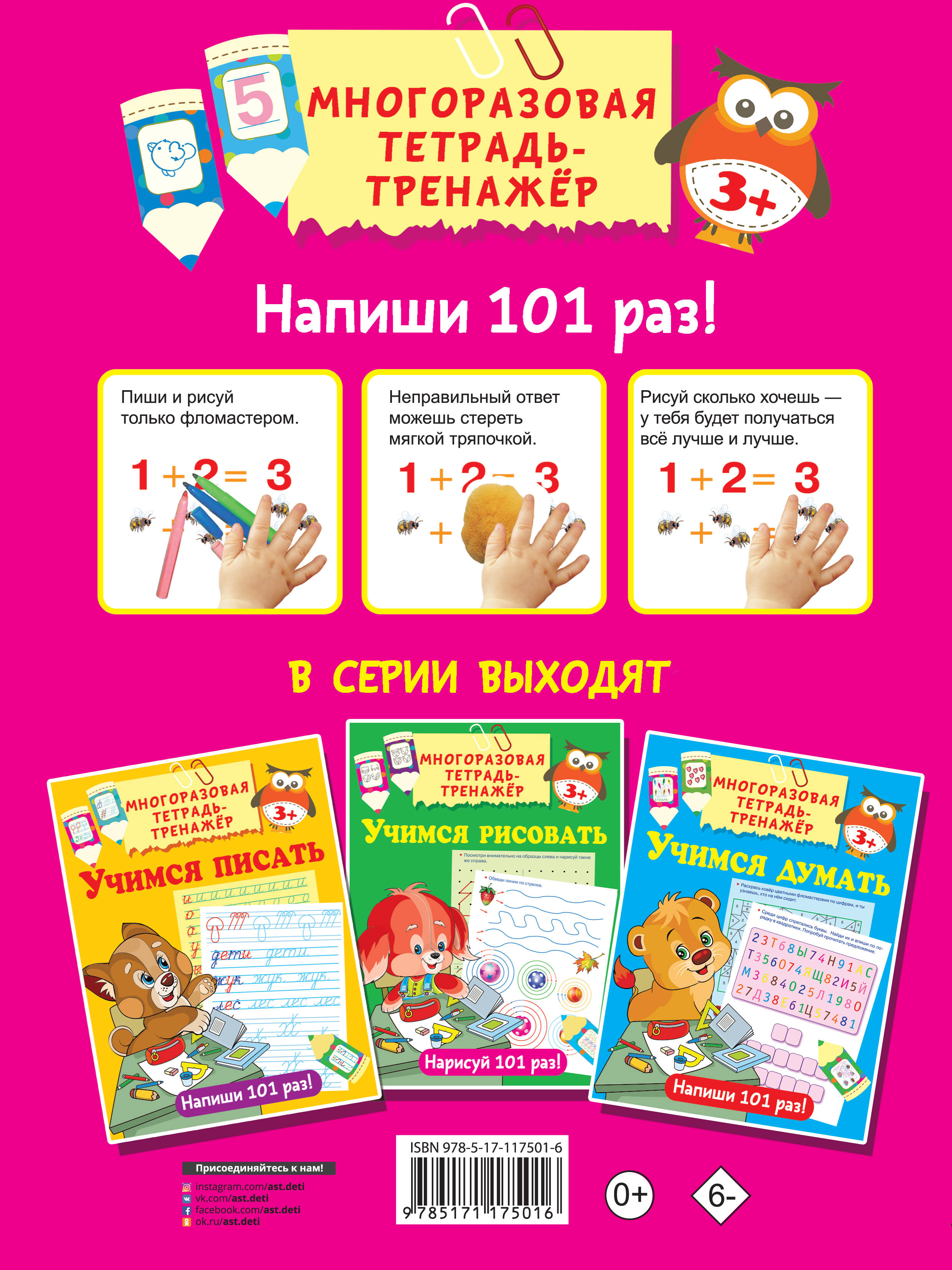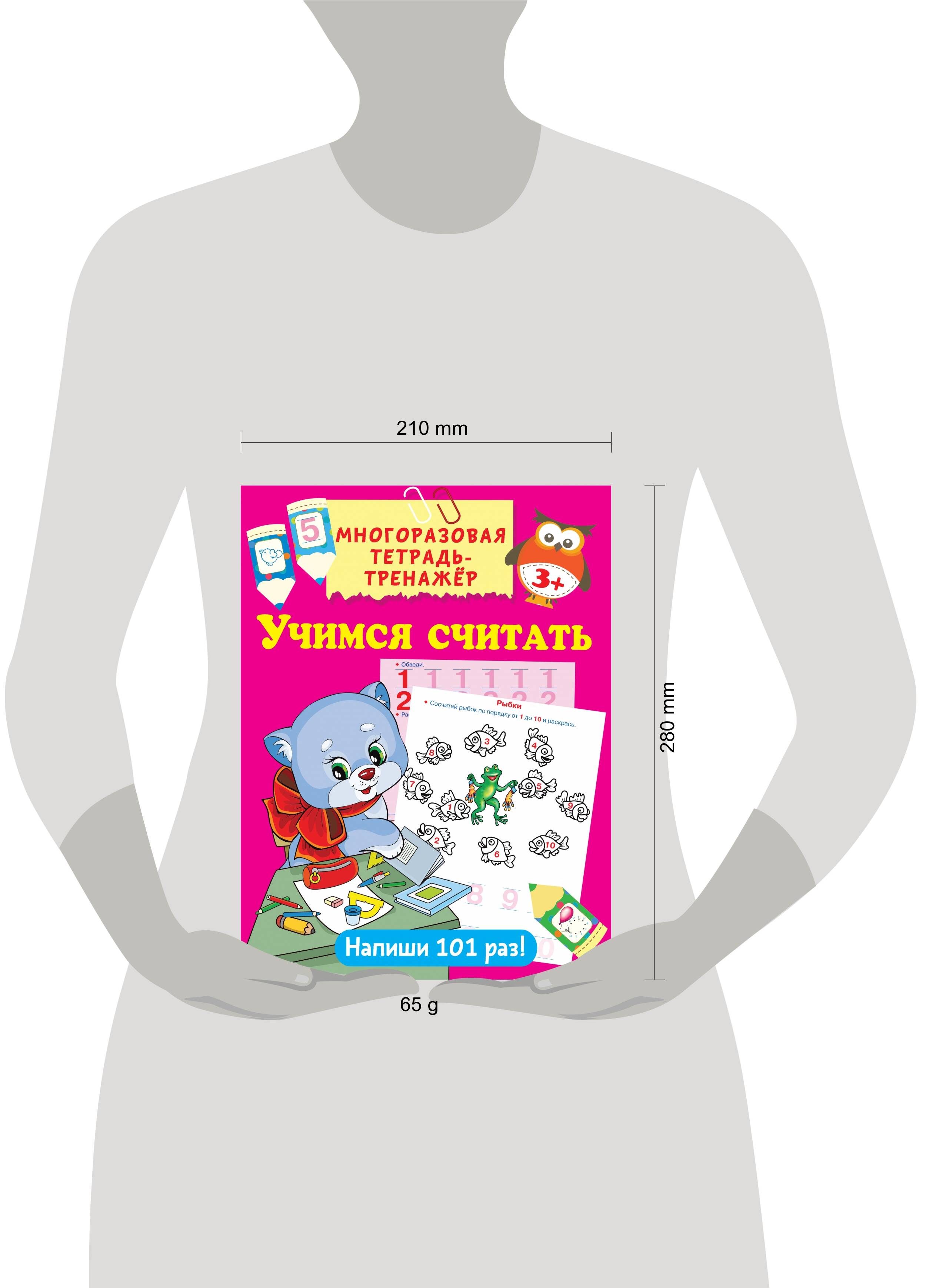 О чем эта книга Многоразовая тетрадь-тренажёр познакомит малышей с цифрами и числами от 1 до 10, поможет научиться писать их. Кому эта книга будет интересна Заботливым родителям для занятий с детьми дошкольного возраста. Каковы особенности этой книги • Многоразовая тетрадь-тренажёр - это одновременно дидактический материал и прописи. • Занимаясь по этой книжке, малыш выучит порядковый и количественный счет, с удовольствием будет писать цифры и числа. • Благодаря специальному покрытию страниц цифры можно много раз обводить по линиям маркером на водной основе и аккуратно стирать. • Занимательные задания развивают интеллект, пространственное мышление и творческие способности, мелкую моторику, приучают ребёнка к усидчивости и самостоятельности. • Малыш учится правильно и аккуратно писать цифры, не боясь ошибиться - любую ошибку можно легко исправить!| Издательство | ИЗДАТЕЛЬСТВО "АСТ" |
