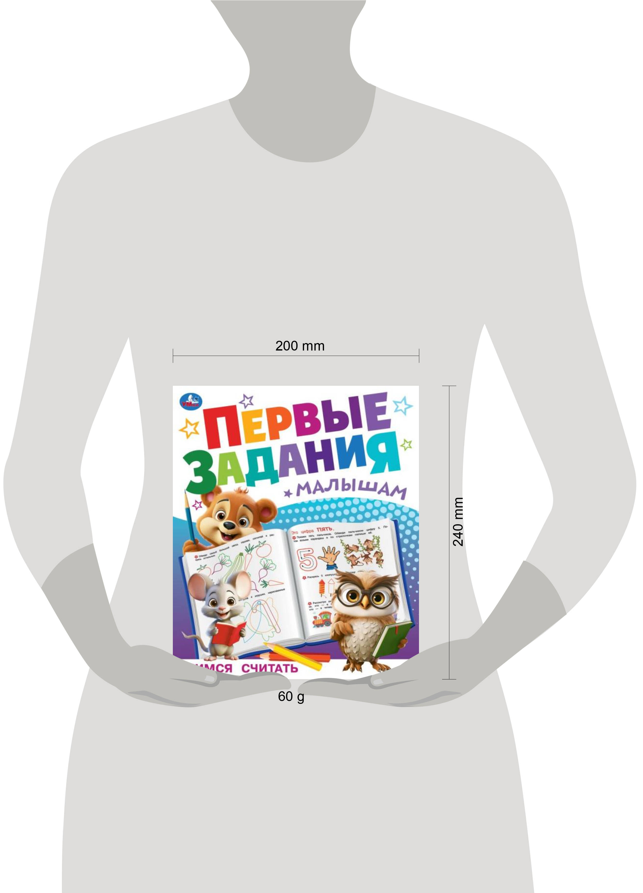 Аннотация: Учимся считать. Первые задания малышам. 197х235 мм. Скрепка. 16 стр. Умка в кор.50шт
