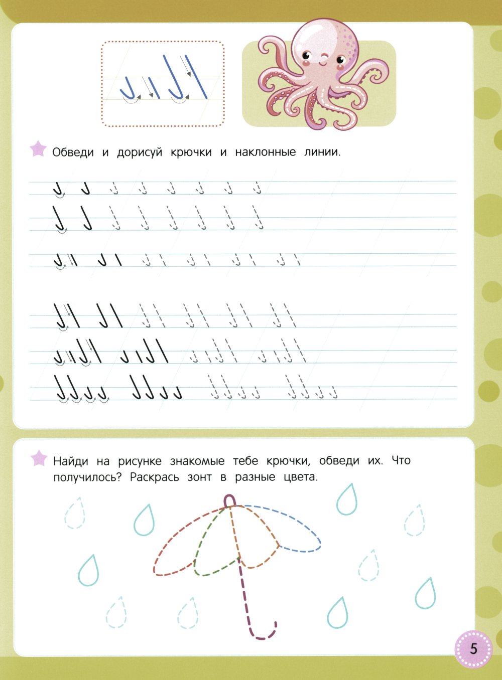 Учись - пиши - стирай. Учимся писать крючки и закорючки: многоразовая тетрадь-тренажер