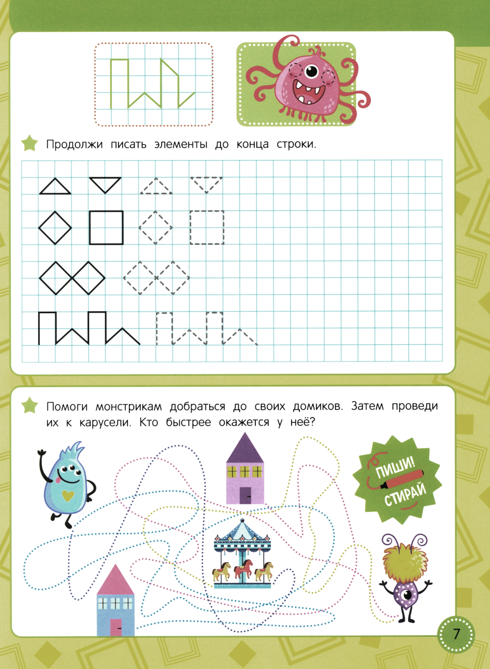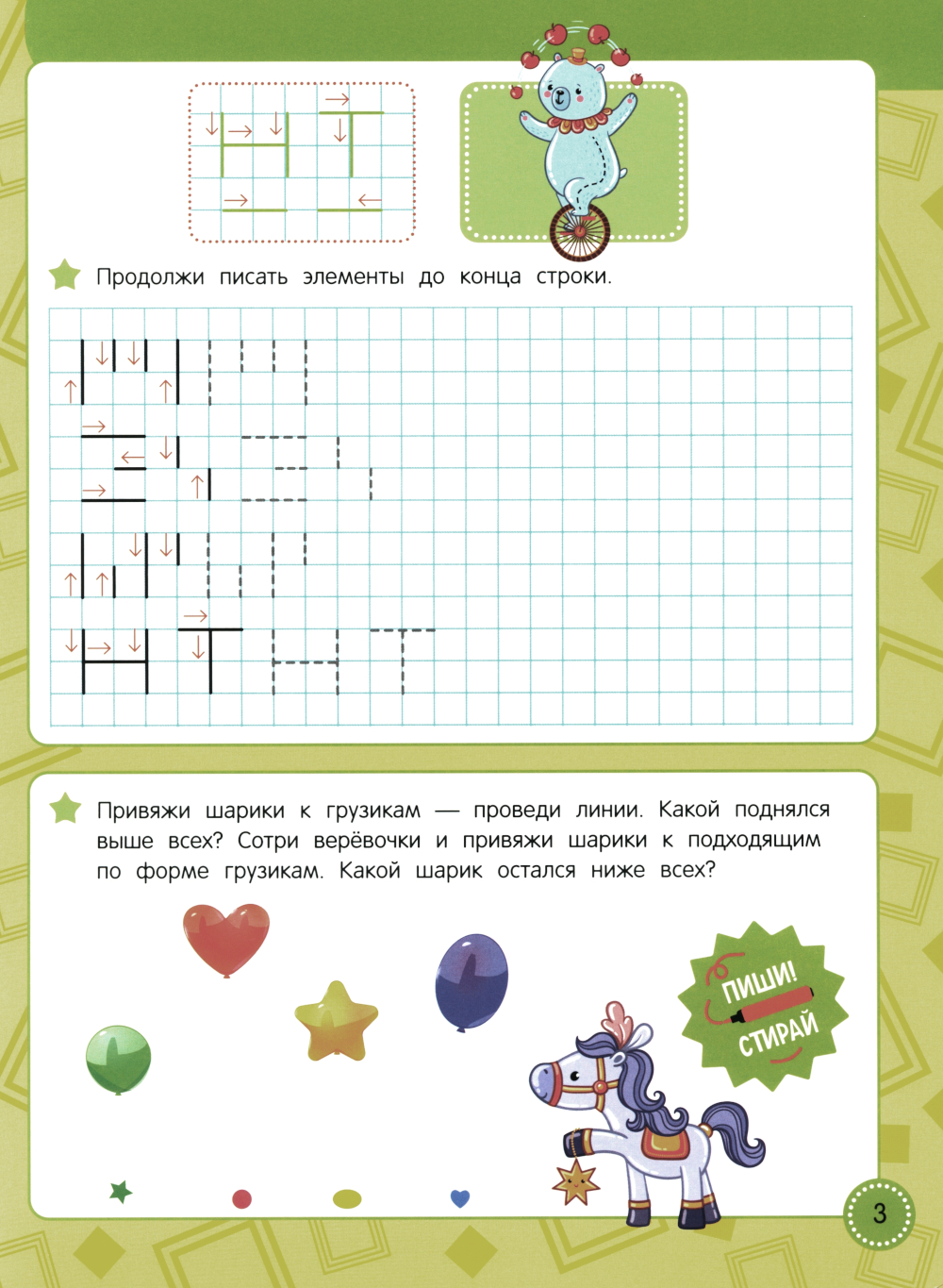 Многоразовые прописи с ламинированными страницами помогут научиться уверенно держать ручку, ведь задания можно выполнять фломастером снова и снова, а ошибки легко исправить с помощью влажной салфетки. Тут нет скучных заданий, и тренировка на многоразовых страничках точно понравится ребёнку. Рисуя, обводя разные предметы, ребёнок быстро и с удовольствием научится писать буквы, цифры и их элементы и подготовится к дальнейшему обучению в школе.