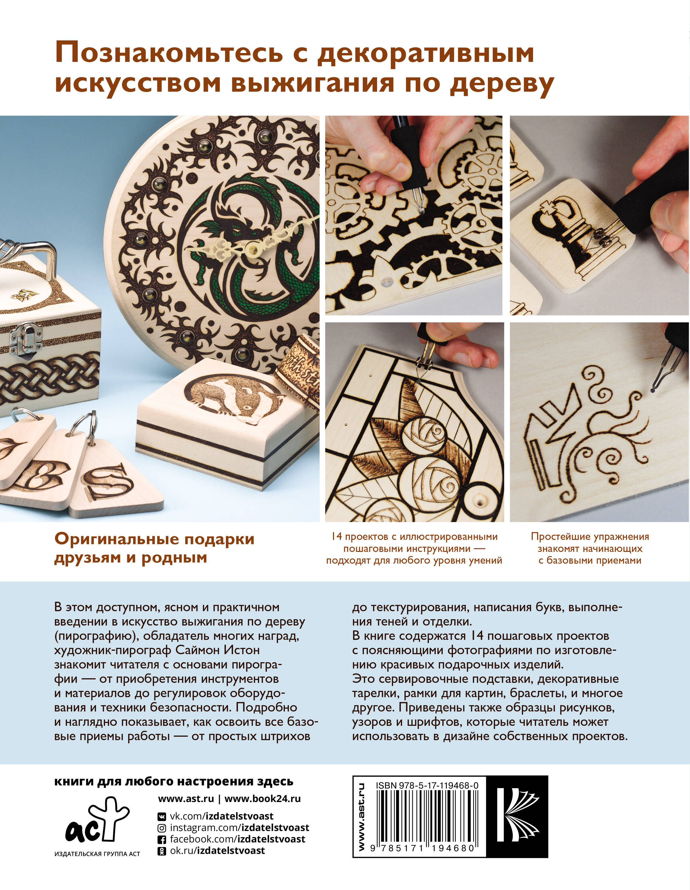 В мировом бестселлере «Учись выжигать. Пошаговое руководство для начинающих» есть все необходимое, чтобы освоить увлекательное и декоративное искусство выжигания по дереву - пирографию. Советы по приобретению материалов и оборудования, упражнения для развития навыков, базовые и профессиональные приемы работ, пошаговые инструкции по изготовлению разнообразных красивых подарочных изделий на радость себе и близким. Книга рассчитана на широкую читательскую аудиторию и может быть использована для семейного творчества.| Издательство | ИЗДАТЕЛЬСТВО "АСТ" |