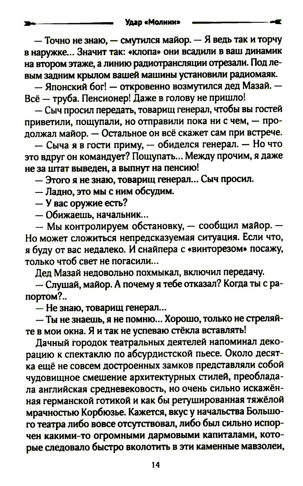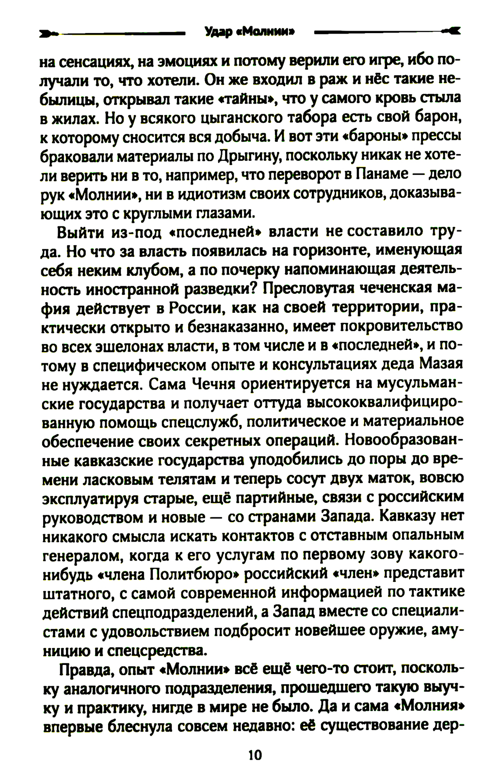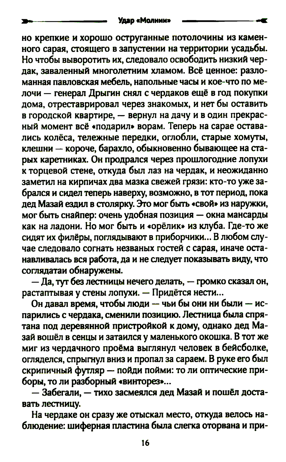 Настоящие профессионалы из секретного спецподразделения «Молния» не отступятся, пока не достигнут цели. Они умеют воевать, обладают блестящими тактическими навыками и знают, что такое дружба, совесть и офицерская честь. Однако опытным диверсантам-разведчикам предстоит столкнуться с предательством, интригами и личными интересами хитроумных политиков в беззаконные 90-е годы. Удастся ли бывшим бойцам элитного подразделения заблокировать силы диктаторского режима в Чечне? Смогут ли командир «Молнии» дед Мазай и его «зайцы» избежать ловушек кавказской мафии и отличить своих от чужих? Но главный вопрос автора - можно ли поступиться своими принципами ради общей цели? Остросюжетный боевик С. Алексеева увлекает читателя не только динамичным и захватывающим повествованием, но и интересными подробностями о работе российских спецслужб.| Издательство | Концептуал |