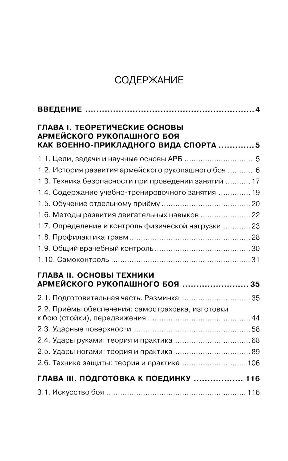 Данное учебно-методическое пособие посвящено одному из популярнейших военно-прикладных видов спорта - Армейскому рукопашному бою (АРБ). Рассмотрена базовая техника АРБ, приведены описания основных технических движений (изготовки к бою (стойки), передвижения, удары руками и ногами, техника защиты, основы поединка), а также представлены методика обучения рукопашному бою, биомеханика и психологическая подготовка. Эти упражнения позволяют сделать технику АРБ более экономичной и точной, без лишних затрат энергии и сил. Пособие будет интересно прежде всего преподавателям кафедр физической подготовки военных вузов, тренерам, инструкторам центров специального назначения, курсантам и военнослужащим воздушно-десантных войск, а также всем, кто занимается и интересуется рукопашным боем.| Издательство | Профит Стайл |