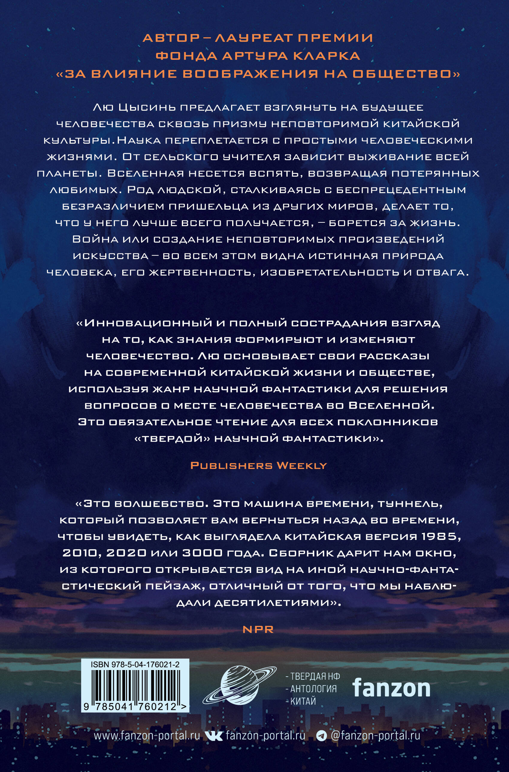 Новый сборник повестей великого китайского фантаста Лю Цысиня, создателя блистательной трилогии «Задача трех тел». Лю Цысинь предлагает взглянуть на будущее человечества сквозь призму неповторимой китайской культуры. Наука переплетается с простыми человеческими жизнями. От сельского учителя зависит выживание всей планеты. Вселенная несется вспять, возвращая потерянных любимых. Род людской, сталкиваясь с беспрецедентным безразличием пришельца из других миров, делает то, что у него лучше всего получается - борется за жизнь. Война или создание неповторимых произведений искусства - во всем этом видна истинная природа человека, его жертвенность, изобретательность и отвага. «Инновационный и полный сострадания взгляд на то, как знания формируют и изменяют человечество. Лю основывает свои рассказы на современной китайской жизни и обществе, используя жанр научной фантастики для решения вопросов о месте человечества во Вселенной. Это обязательное чтение для всех поклонников твердой научной фантастики». - Publishers Weekly «Всесторонний взгляд на творчество Лю, показывающий его работы как в стиле, знакомом читателям трилогии "ЗАДАЧИ ТРЕХ ТЕЛ", так и в других, возможно, более неожиданных стилях. Настоятельно рекомендуется». - Booklist «Эти истории превосходно сочетают жесткую научную фантастику и мягкую эмоциональность. В произведениях Лю сохраняется спокойная, деловая стилистика, даже тогда, когда они передают изобретательную жестокость и красивые образы». - Shelf Awareness «Это волшебство. Это машина времени; туннель, который позволяет вам вернуться назад во времени, чтобы увидеть, как выглядела китайская версия 1985, 2010, 2020 или 3000 года. Сборник дарит нам окно, из которого открывается вид на иной научно-фантастический пейзаж, отличный от того, что мы наблюдали десятилетиями». - NPR| Издательство | ООО "Издательство "Эксмо" |