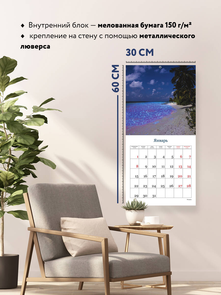 О серии: Наши настенные календари отличаются высоким качеством исполнения! Тщательно подобранные иллюстрации, напечатанные на глянцевой бумаге высочайшего качества, станут настоящим украшением дома, а в календарной сетке найдется место для ваших планов: большие клетки позволят делать записи и организовать свой год! В календаре также отмечены все государственные праздники. В серии настенных календарей издательства «ЭКСМО» каждый найдет тему по вкусу: великие художники, великолепные подборки с самыми знаменитыми произведениями искусства, легендарные кинематографические саги и игры, главные книжные авторы и бестселлеры, фотографии и иллюстрации любимых животных и многое-многое другое! О календаре: В календаре подобраны красочные фотографии нашей планеты, которые покажут вам, насколько наш мир яркий и многогранный. Фотографии как будто из фильма «Аватар» точно перенесут вас в другую вселенную! И ведь все это можно найти на Земле! Благодаря большому формату и высокому качеству изображений этот календарь может стать отличным дополнением интерьера. В нем также отмечены выходные дни, а просторная сетка позволяет удобно планировать время и записывать важные события. А еще включен дополнительный разворот с первыми 4 месяцами 2025 года! Для кого: Для тех, кто не может представить свою жизнь без путешествий! Ну и для фанатов вселенной «Аватара» Джеймса Кэмерона! Технические параметры: - Тип календаря - настенный перекидной. - Год - 2024. - Календарная сетка - с разбивкой по месяцам. - Вид скрепления - скрепка. - Ширина - 30 см. - Высота - 30 см. - Внутренний блок - мелованная бумага 150 г/м2. - Подложка - плотный гофрокартон для поддержания формы. - Индивидуальная упаковка в плотный целлофановый пакет.| Издательство | ООО "Издательство "Эксмо" |