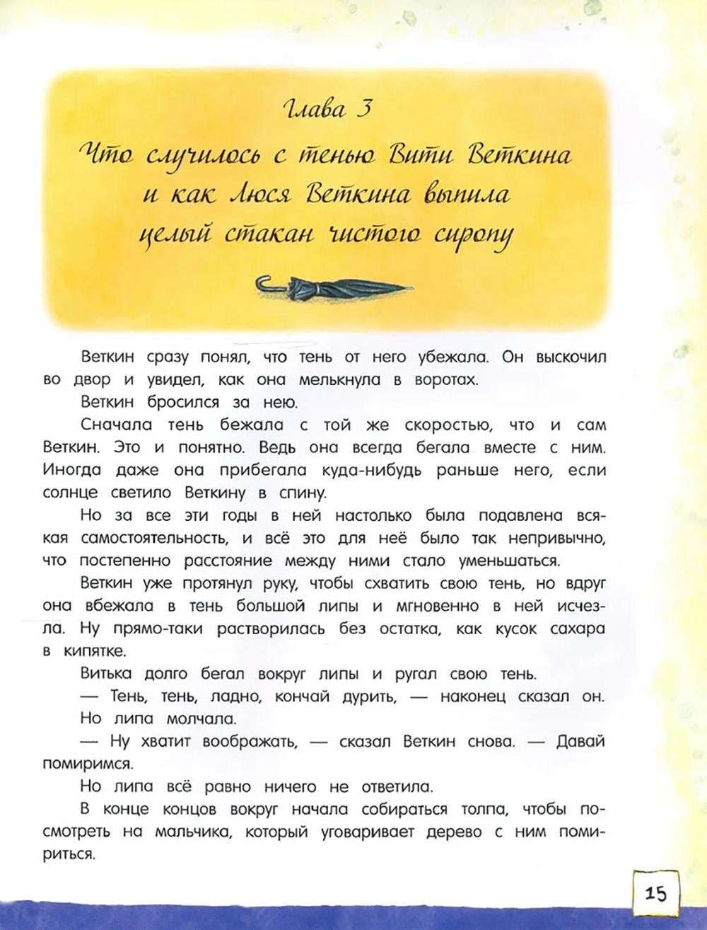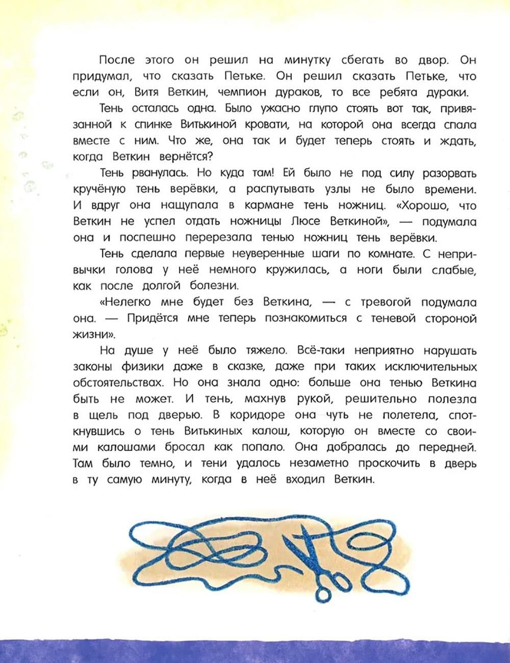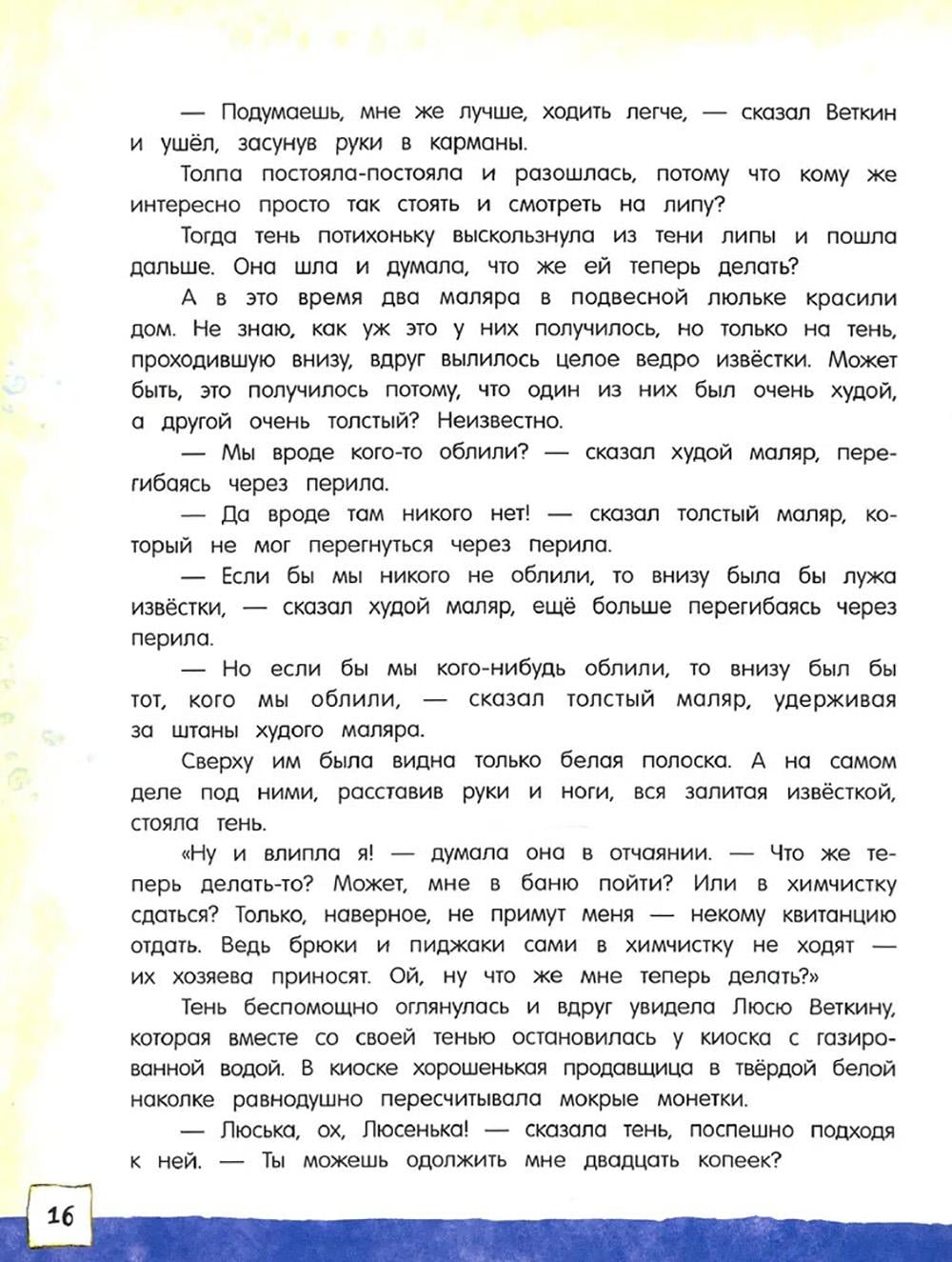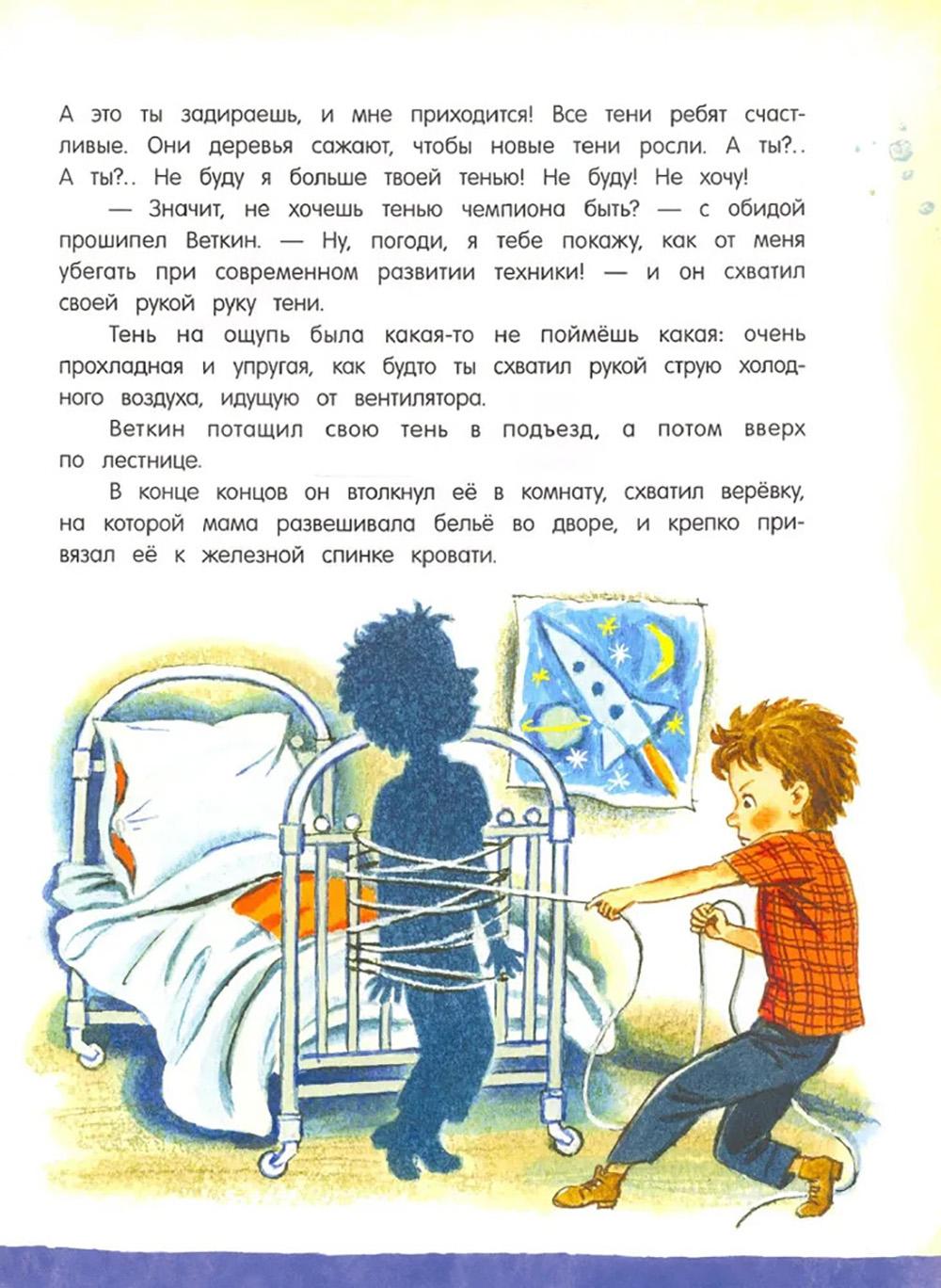 Сказочная повесть Софьи Прокофьевой о фантастических приключениях Вити Веткина и его тени! Став школьным чемпионом по шахматам, Витя не просто начал задаваться, а сделался таким высокомерным и обидчивым, что от него сбежала его собственная тень - а остаться без тени в жаркий летний день не так уж приятно. И начинаются невероятные похождения двух очень похожих мальчиков - настоящего Вити и его тени, которая ходит сама по себе, знакомится с тенями зверей в зоопарке и мечтает, что однажды настоящий Витя образумится и исправится. Это одна из тех детских книжек, которые увлекательно и весело учат простым и необходимым вещам: тому, что быть добрым и щедрым гораздо лучше, чем высокомерным и эгоистичным, и тому, как важно иметь верных друзей. Озорные и яркие иллюстрации к повести нарисовал Сергей Бордюг. Рекомендовано для внеклассного чтения. Для детей 7-10 лет.| Издательство | Изд. Лабиринт Пресс |