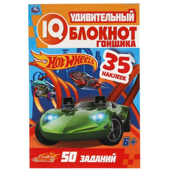 Удивительный блокнот гонщика. IQ блокнот. Хот Вилс. 145х210 мм. 64 стр.+35 наклеек. Умка в кор.50шт