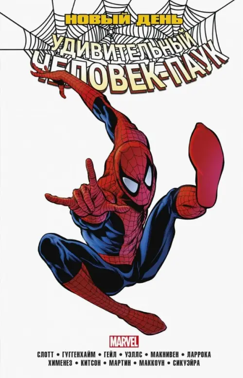 После событий "Ещё одного дня" жизнь Питера Паркера перевернулась с ног на голову, но он решил оставить прошлое позади и уверенно пойти навстречу "Новому дню". Такой смены статус-кво вы ещё не видели: тут есть новые враги и новые друзья, но без знакомых лиц тоже не обошлось. Теперь жизнь Питера безумнее некуда! Мало того что в "Дэйли Бьюгл" произошли большие изменения, на дворе бушует ураган, а по улицам слоняется стример Чудила, так ещё и громящий всё и вся Урод вынуждает Питера обратиться к своим товарищам Мстителям. Признай, тигрёнок, это Джекпот! А также: кто победит в битве стенолаза и паутиноплёта, когда в городе объявится таинственный другой Человек-Паук?