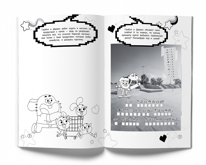 В компании Гамбола и Дарвина никогда не бывает скучно! Раскрашивай, решай задачки и головоломки, проходи лабиринты и узнавай ближе удивительный мир Гамбола и всех его друзей! Тебе понравится!