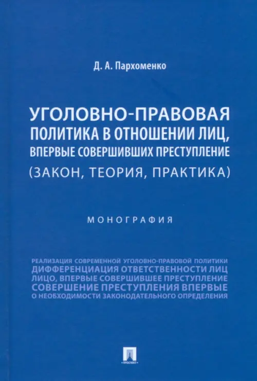 Аннотация: Уголовно-правовая политика в отношении лиц, впервые совершивших преступление. (Закон, теория, практика). Монография