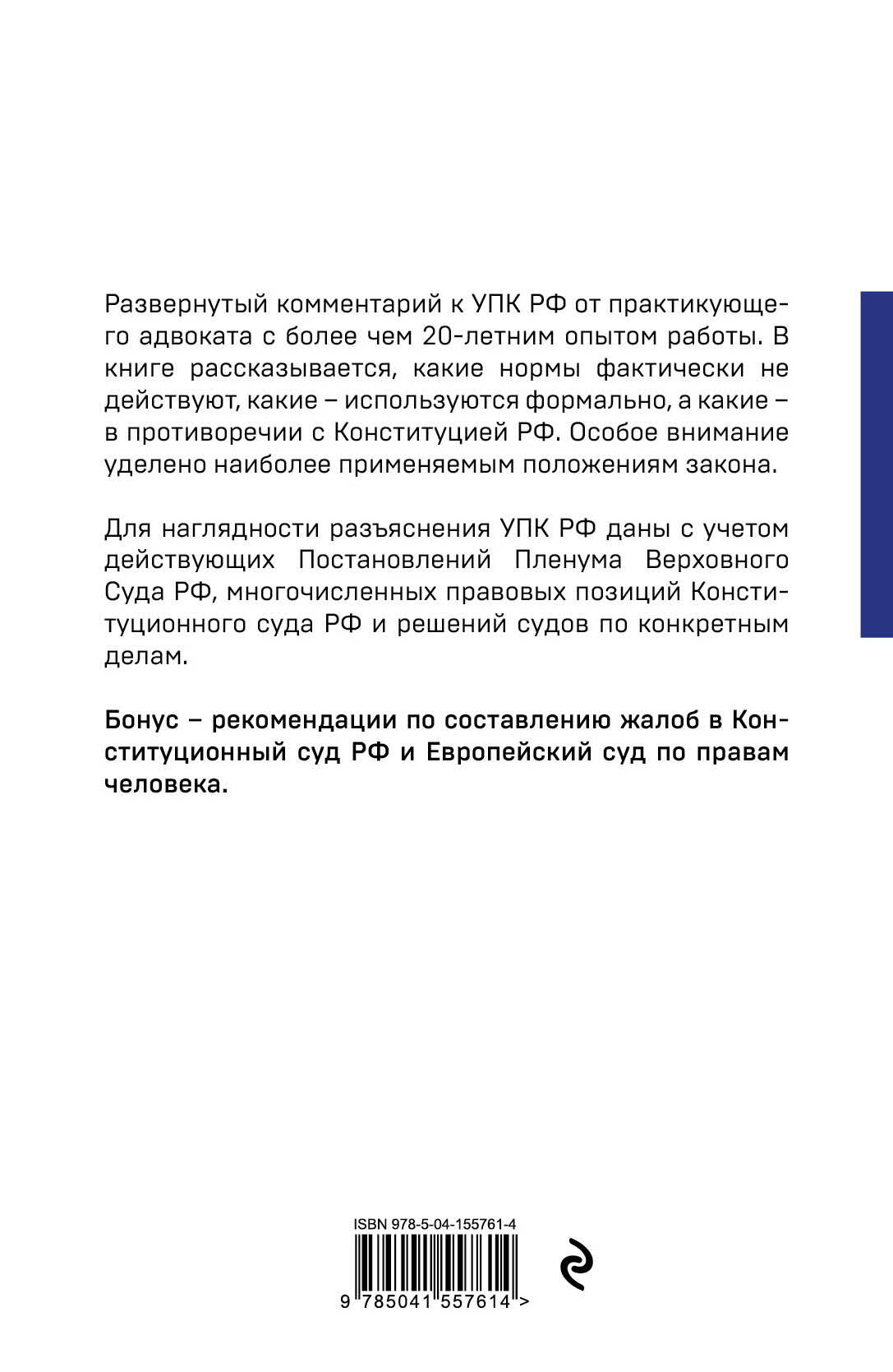 Развернутый комментарий к УПК РФ от практикующего адвоката с более чем 20-летним опытом работы. В книге рассказывается, какие нормы фактически не действуют, какие - используются формально, а какие - в противоречии с Конституцией РФ. Особое внимание уделено наиболее применяемым положениям закона. Разъяснения УПК даны с постановлениями Пленума Верховного Суда РФ, правовыми позициями Конституционного суда РФ и решениями отдельных судов по конкретным делам.| Издательство | ООО "Издательство "Эксмо" |