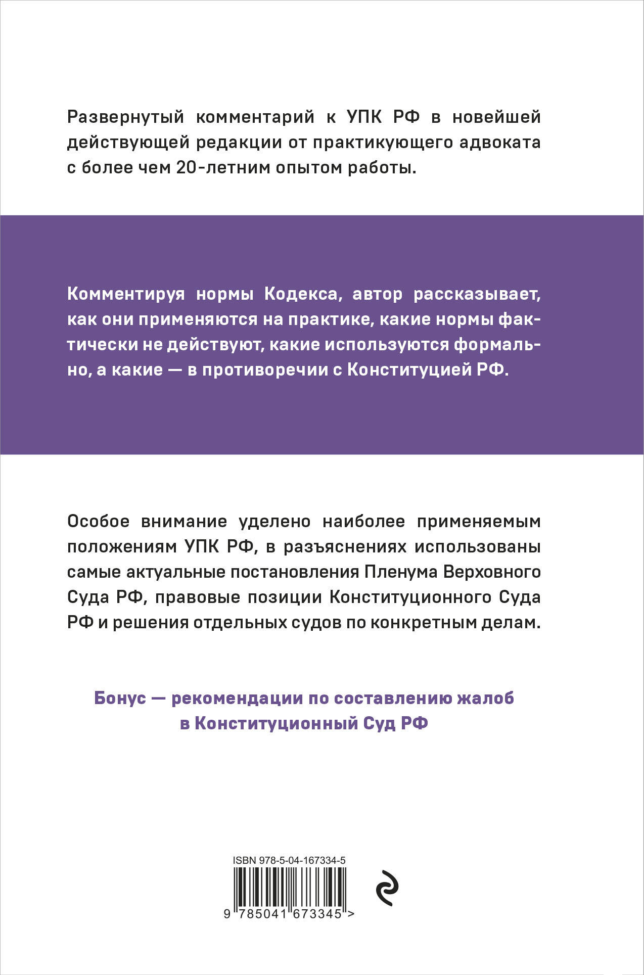 Четвертое издание развернутого комментария к УПК РФ в новейшей действующей редакции от практикующего адвоката с более чем 20-летним опытом работы. Комментируя нормы Кодекса, автор рассказывает, как они применяются на практике, какие нормы фактически не действуют, какие используются формально, а какие - в противоречии с Конституцией РФ. Особое внимание уделено наиболее применяемым положениям УПК РФ, в разъяснениях использованы постановления Пленума Верховного Суда РФ, правовые позиции Конституционного Суда РФ и решения отдельных судов по конкретным делам. Бонус - рекомендации по составлению жалобы в Конституционный Суд РФ. Книга пригодится работникам судов, прокуратуры и и следственных органов, адвокатам по уголовным делам и студентам, изучающим уголовный процесс.| Издательство | ООО "Издательство "Эксмо" |