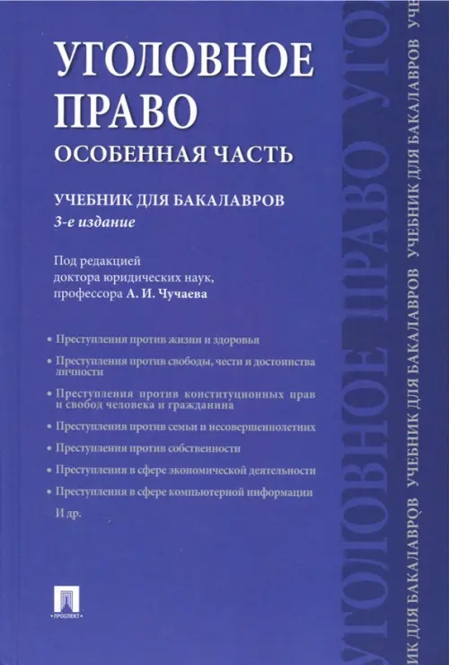 Данный учебник - экспериментальный, подготовлен преподавателями кафедры уголовного права Московского государственного юридического университета имени О.Е. Кутафина с участием специалистов других вузов (Национального исследовательского университета «Высшая школа экономики» Московского государственного лингвистического университета) и ВНИИ МВД России в соответствии с программой курса «Уголовное право. Особенная часть» на основе современного уголовного законодательства, а также иных нормативных правовых актов. При анализе уголовно-правовых институтов учтены постановления Пленума Верховного Суда РФ по вопросам применения уголовного права.