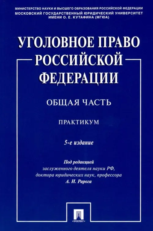 Практикум является пятым, переработанным и дополненным изданием, которое рекомендовано в качестве учебного пособия для проведения практических занятий по уголовному праву Московским государственным юридическим университетом имени О.Е. Кутафина (МГЮА). Пособие содержит материалы, необходимые для проведения практических занятий по курсу «Общая часть уголовного права РФ». В практикуме учтены последние изменения, внесенные в Уголовный кодекс РФ и текущее законодательство, а также последние постановления Пленума Верховного Суда РФ. Законодательство приведено по состоянию на 2 августа 2019 г. Для студентов, аспирантов, преподавателей юридических факультетов и вузов. Может быть использован при самостоятельном изучении уголовного права РФ.