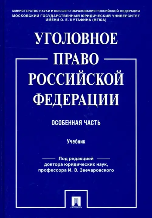 Учебник подготовлен кафедрой уголовного права Московского государственного юридического университета имени О.Е. Кутафина (МГЮА), соответствует образовательным программам подготовки специалистов по специальностям 40.05.01 «Правовое обеспечение национальной безопасности», 40.05.04 «Судебная и прокурорская деятельность», 40.05.03 «Судебная экспертиза» (уровень специалитета). На основе действующего законодательства, теории уголовного права и судебной практики раскрыты положения Особенной части уголовного права. Нормативные материалы представлены по состоянию на 1 июня 2019 г. Предназначен для студентов, аспирантов и преподавателей юридических факультетов и вузов, а также юристов, практикующих в уголовно-правовой сфере деятельности.