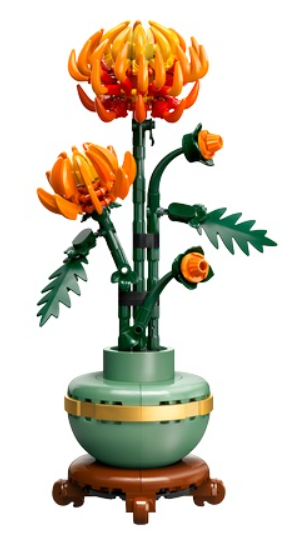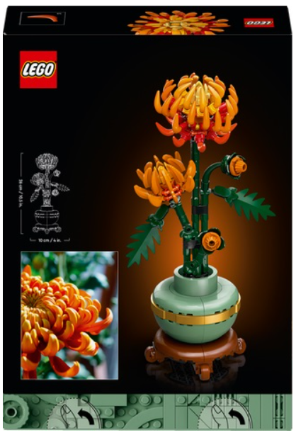 Детализированное растение LEGO в этом наборе для сборки для взрослых имеет подвижные листья и лепестки, запечатлевает яркий оранжевый цветок в бутоне, цветущий и полностью распустившийся, и поставляется с пастельно-зеленым цветочным горшком, украшенным золотой полосой и установленным на постаменте с эффектом дерева. Простая в сборке модель цветка хризантемы LEGO станет элегантным центральным элементом декора дома или офиса и может быть выставлена вместе с другими наборами из коллекции LEGO Botanical (продается отдельно).