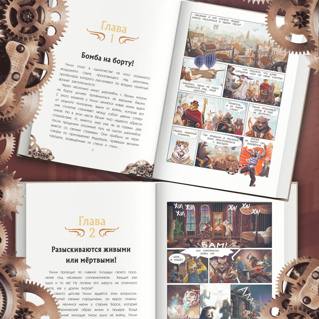 Встречайте новый уникальный формат на книжном рынке - книгокомиксы, сочетающий в себе текстовый роман и полосы в виде комиксов! Уилли, белый тигр-колдун, отвергнутый своей семьей, надеется найти покой и умиротворение в Меканье, великом городе из стекла и стали. Но у судьбы на него другие планы! Не успев ступить на землю с дирижабля, ситуация вынудила тигра объединить свои силы с Фенрисом, воином-волком, чтобы спасти жизни двух послов, прибывших для подписания мирного договора. Вот только одна проблема: Уилли и Фенри возненавидели друг друга с первого взгляда, но оба стали целью заговорщиков! Теперь они в бегах, и им придется объединить свои навыки и научиться доверять друг другу, если они хотят спасти Меканью...| Издательство | ООО "Издательство "Эксмо" |