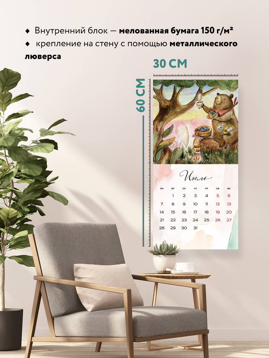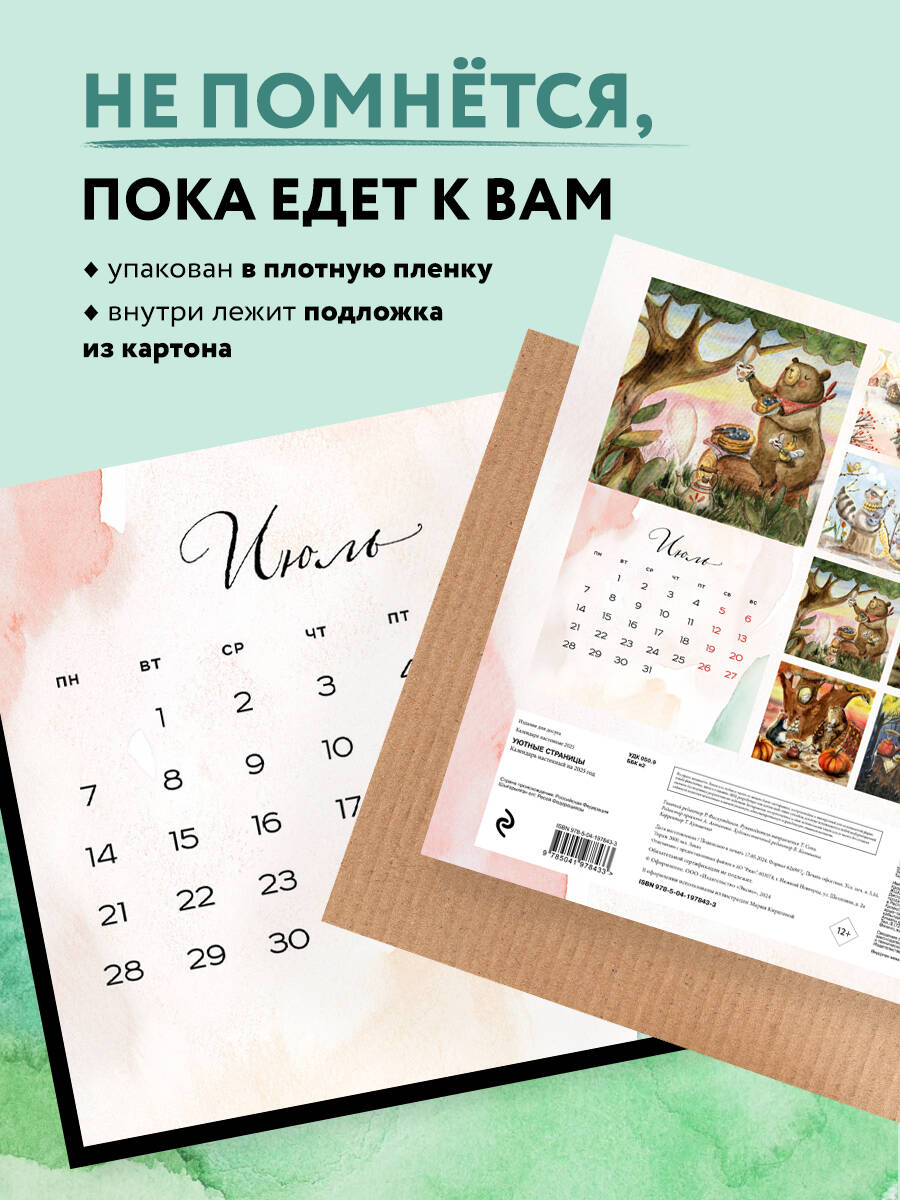 О серии: Наши настенные календари отличаются высоким качеством исполнения! Тщательно подобранные иллюстрации, напечатанные на глянцевой бумаге высочайшего качества, станут настоящим украшением дома, а в календарной сетке найдется место для ваших планов: большие клетки позволят делать записи и организовать свой год! В календаре также отмечены все государственные праздники. В серии настенных календарей издательства «ЭКСМО» каждый найдет тему по вкусу: великие художники, подборки с самыми знаменитыми произведениями искусства, легендарные кинематографические саги и игры, главные книжные авторы и бестселлеры, фотографии и иллюстрации любимых животных и многое-многое другое! О календаре: Настенный календарь с невероятно милыми иллюстрациями о жизни животных в лесу. Погрузитесь в сказочный мир вместе с теплым календарем от Марии Киршиной! Для кого: Идеально в подарок друзьям, родителям и даже коллегам! Эти милые зарисовки из лесной жизни никого не оставят равнодушными. Технические параметры: - Тип календаря - настенный перекидной. - Год - 2025. - Календарная сетка - с разбивкой по месяцам. - Вид скрепления - скрепка. - Ширина - 30 см. - Высота - 30 см. - Внутренний блок - мелованная бумага 115 г/м2. - Подложка - плотный гофрокартон для поддержания формы. - Индивидуальная упаковка в плотный целлофановый пакет.| Издательство | ООО "Издательство "Эксмо" |