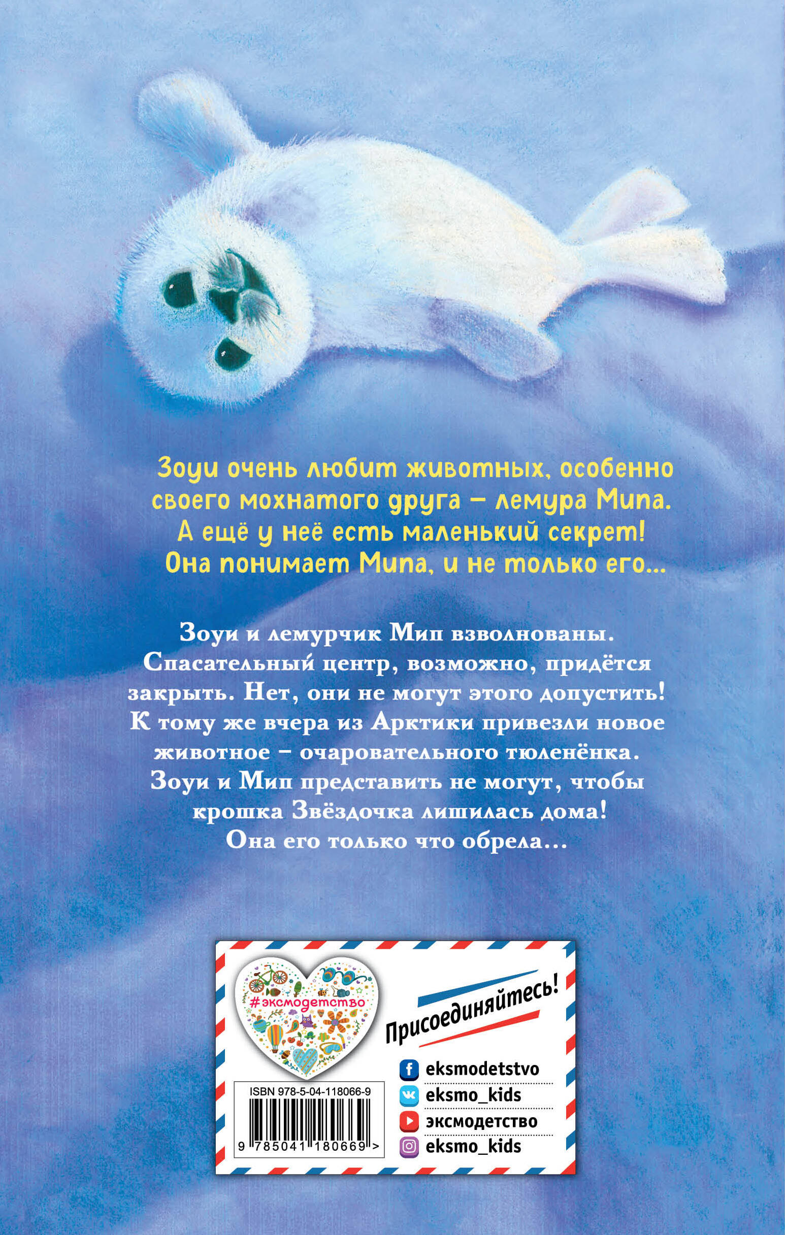 Смешные и позитивные приключения Зоуи и ее озорного друга говорящего лемурчика Мипа продолжаются! В каждой книге одна маленькая история, которая научит ребенка чему-то новому и познакомит его с разными животными. С Зоуи и Мипом делать открытия вдвойне интересно! Очаровательные иллюстрации Софи Уильямс отлично дополняют рассказ и уже знакомы читателю. Именно Софи рисует для серии-бестселлера Холли Вебб «Добрые истории о зверятах». Зоуи и лемурчик Мип взволнованы. Спасательный центр, возможно, закроют. Нет, они не могут этого допустить! К тому же вчера из Арктики привезли новое животное - очаровательного тюленёнка. Неужели крошка Звёздочка лишится дома? Она ведь его только недавно обрела…| Издательство | Эксмо |