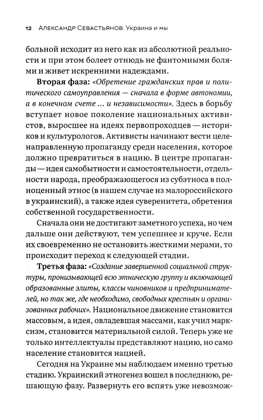 Предлагаемая читателю книга написана известным знатоком проблемы, главным научным сотрудником Московского Гуманитарного университета А.Н. Севастьяновым. Автор более тридцати лет разрабатывает тему русско-украинских отношений и историю украинской «незалежности и самостийности». В 1997-1997 гг. он был завотделом Украины и Крыма, а затем замдиректора по науке Института стран СНГ. Им подготовлен сборник «Обман века. Документы и материалы к проблеме ратификации "Договора о дружбе, сотрудничестве и партнерстве" между Россией и Украиной» (М., 1999) и десятки статей по украинскому вопросу. Ещё в середине 1990-х он на основе глубокого анализа ситуации уверенно предсказывал русско-украинскую войну. Тогда ему никто не хотел верить, но сегодня ясно, что прав был он, а его оппоненты заблуждались.