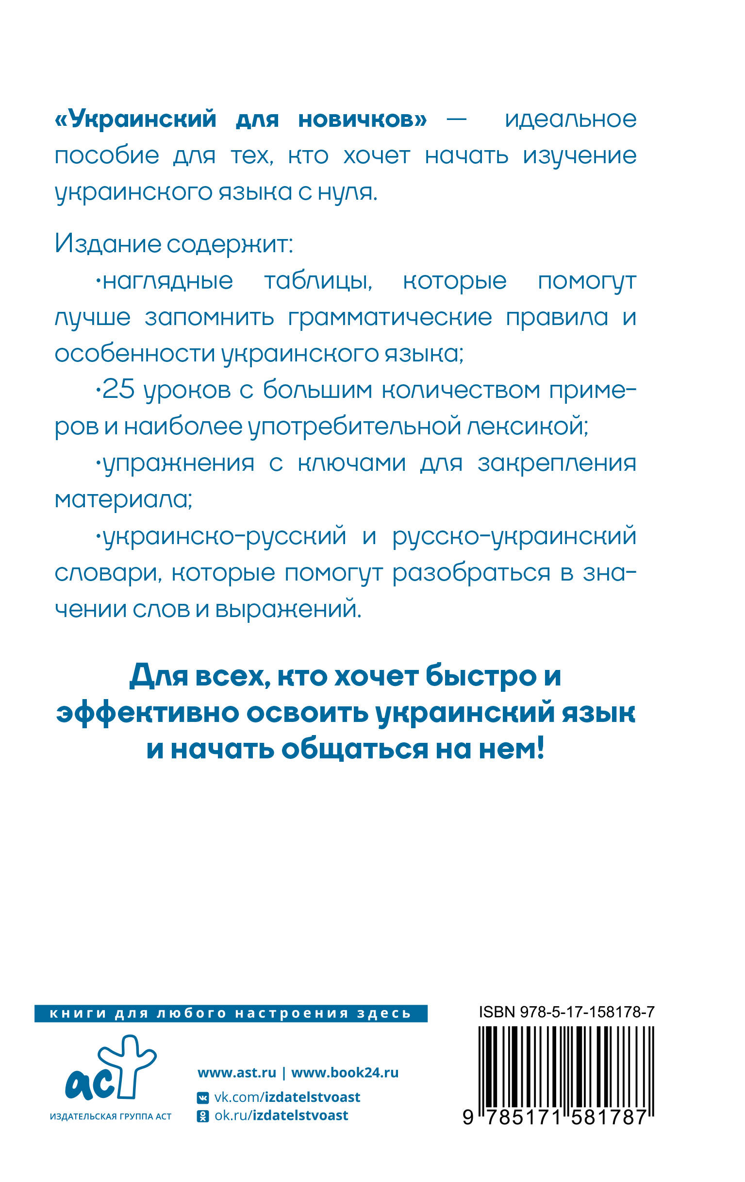 Степан Гончар - автор справочных и учебных пособий по украинскому языку. Пособие предназначено для обучения украинскому языку на начальном уровне. В этой книге вы найдете основные грамматические темы, полезную лексику для практики разговорной речи, упражнения для тренировки и ответы к ним в конце издания. Наглядные таблицы, большое количество примеров, а также скороговорки и шутки помогут лучше усвоить материал и почувствовать все особенности языка. В конце книги вы также можете воспользоваться полезными приложениями и русско-украинским и украинско-русским словарями. Издание предназначено для всех, кто начинает учить украинский язык.| Издательство | ИЗДАТЕЛЬСТВО "АСТ" |