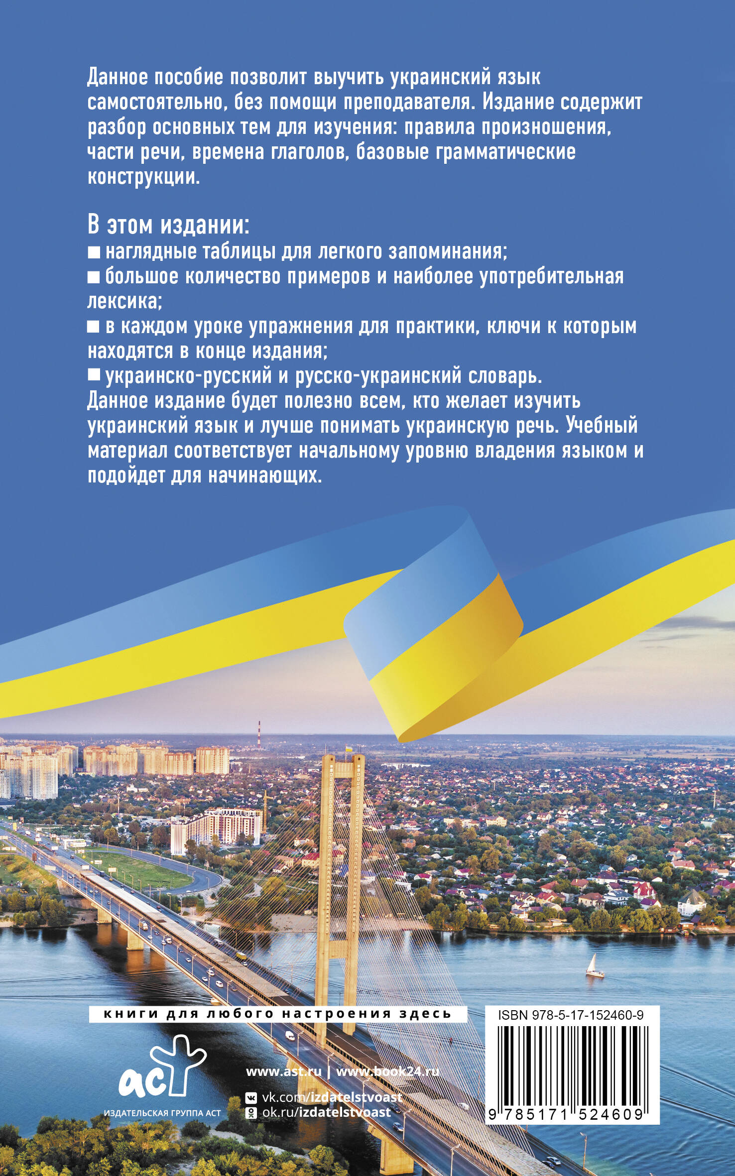 Данное издание подойдет всем, кто желает выучить украинский язык и с легкостью понимать украинскую речь. Материал включает основные грамматические темы, полезную лексику для практики разговорной речи, упражнения для практики и ответы к ним в конце издания. Наглядные таблицы, большое количество примеров, а также скороговорки и шутки помогут лучше усвоить материал и почувствовать все особенности языка. Пособие предназначено для широкого круга читателей, желающих выучить украинский язык. Учебный материал ориентирован на начинающих изучать язык и соответствует начальному уровню владения языком.| Издательство | ИЗДАТЕЛЬСТВО "АСТ" |