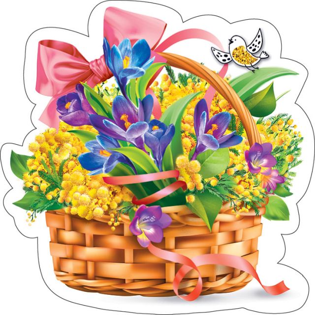 Украшение на скотче "Корзинка с первоцветами и мимозами"