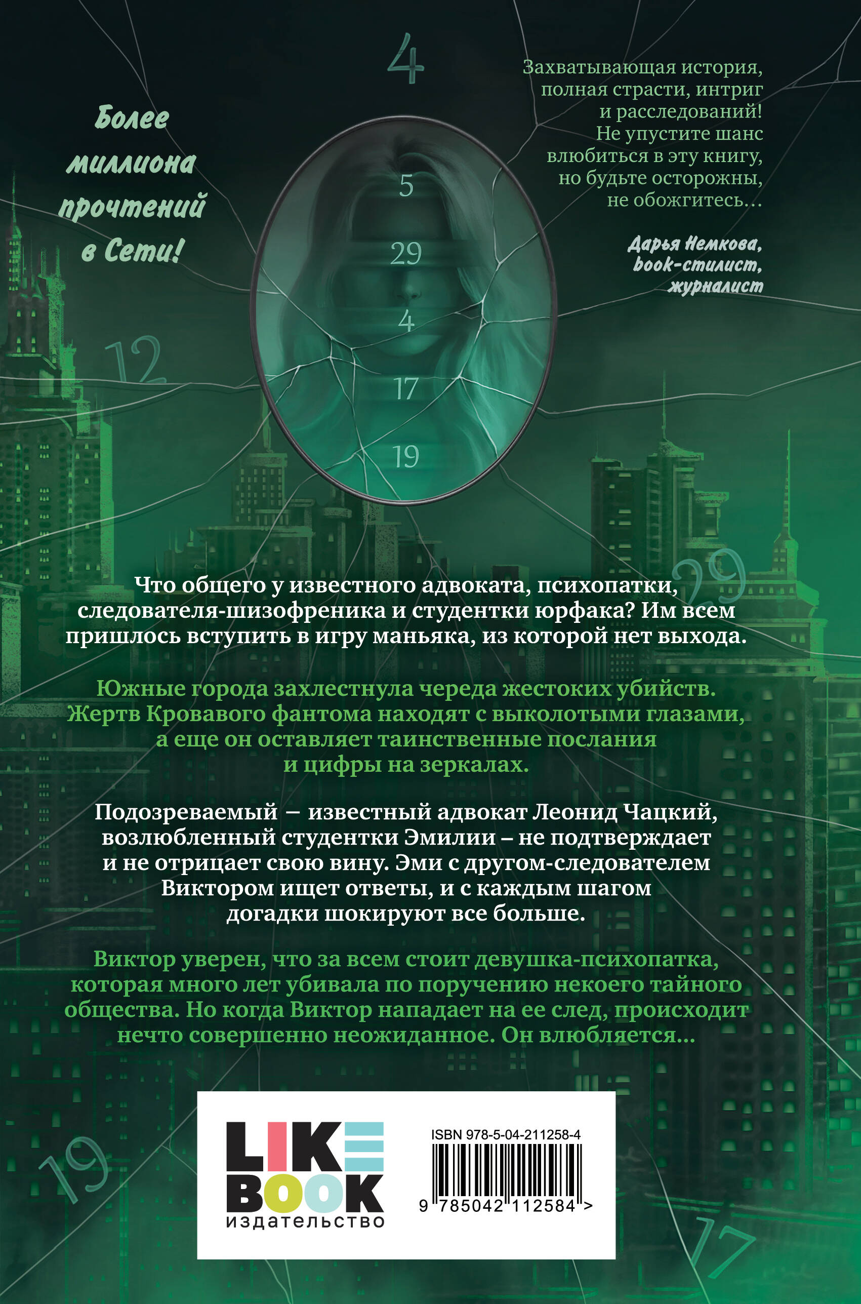 ЕСЛИ БЫ ДРУГ В ДРУГА ВЛЮБИЛИСЬ ХАРЛИ КВИНН И ШЕРЛОК. Новый притягательный роман от автора «Адвокат киллера» Софи Баунт, продолжающий ее цикл «Право на любовь». Что общего у известного адвоката, психопатки, следователя-шизофреника и студентки юрфака? Они вступили в игру маньяка, из которой нет выхода... Любовная история в атмосфере психиатрической клиники, криминала и тайных обществ. Возвращение таинственного адвоката и студентки юрфака... с неожиданным поворотом событий. Неуловимый маньяк, который оставляет на зеркалах цифры и слово «Покайся»... __________________________________________________________________________________________________________________ Южные города захлестнула череда жестоких убийств. Жертв Кровавого фантома находят с выколотыми глазами, а еще он оставляет таинственные послания и цифры на зеркалах. Подозреваемый - известный адвокат Леонид Чацкий, возлюбленный студентки Эмилии - не подтверждает и не отрицает свою вину. Эми с другом из следствия Виктором ищет ответы, и с каждым шагом догадки шокируют все больше. Виктор уверен, что за всем стоит девушка, которая много лет убивала по поручению некого тайного общества. Но когда Виктор нападает на ее след, происходит нечто совершенно неожиданное. Он влюбляется... __________________________________________________________________________________________________________________ Основные тропы: «запретная любовь», «им нельзя быть вместе», «любовь между следователем и убийцей», серая мораль, расследования, серийные убийцы. Идеально для поклонников Рины Кент, Л. Дж. Шэн, Коры Рейли, Пенелопы Дуглас. Нуарное стильное оформление обложки от известной художницы SHVACH. Две цветные вклейки в блоке и цветные форзацы от RubyDi.| Издательство | ООО "Издательство "Эксмо" |