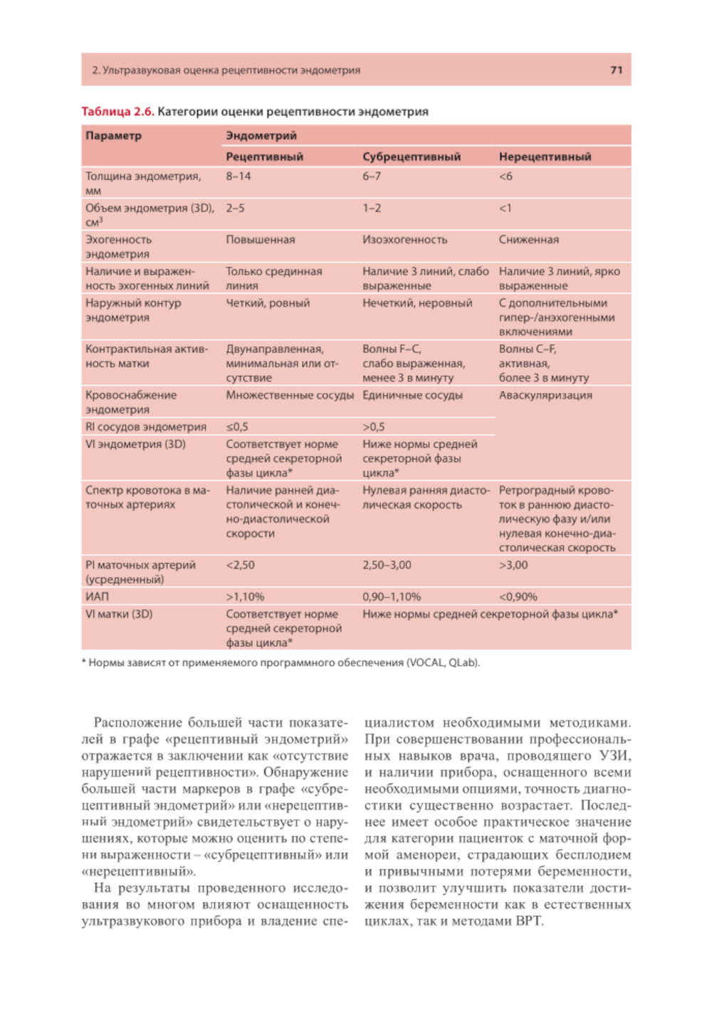 Методические рекомендации освещают современное состояние проблемы ультразвуковой оценки рецептивности эндометрия от общепринятых маркеров до малоизученных, в том числе перспективных, направлений. Описаны ультразвуковые методики, позволяющие оценивать признаки рецептивности в 2D- и 3D-режимах с акцентом на ошибках, которые влияют на интерпретацию результатов. Представлены различные шкалы комплексного анализа. Утверждено в качестве методических рекомендаций для проведения циклов тематического усовершенствования «Ультразвуковая диагностика в гинекологии», общего усовершенствования, ординаторов и аспирантов, проходящих обучение по направлению «Ультразвуковая диагностика, акушерство и гинекология, репродуктология». Протокол Ученого совета ФНМО МИ ФГАОУ ВО РУДН №5 от 16.05.2023.| Издательство | МЕДпресс-информ |
