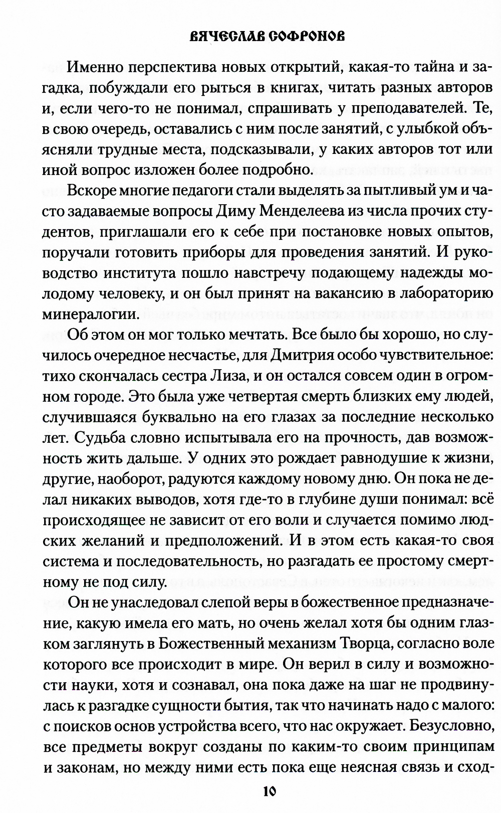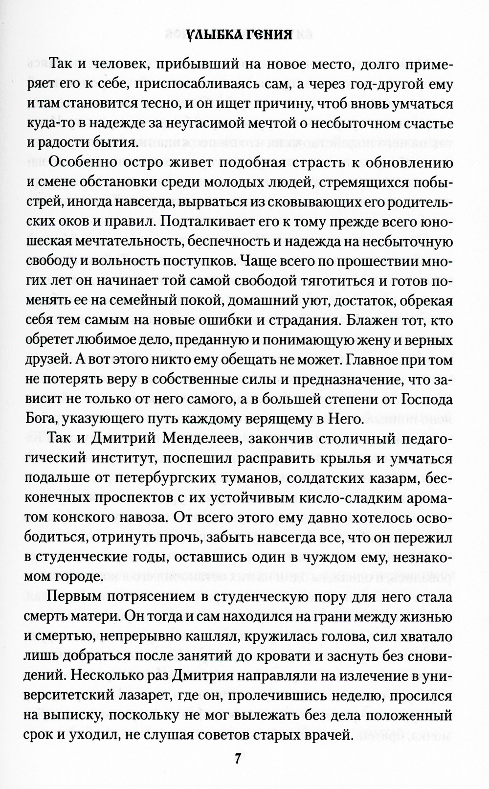 Роман-реконструкция о жизни русского гения, уроженца Тобольска Дмитрия Ивановича Менделеева. Для воссоздания образа главного героя автор избрал наиболее значимые страницы его биографии, встречи с выдающимися деятелями того времени: Пироговым, Тургеневым, Достоевским, Репиным. Описаны основные черты характера ученого, его привычки и убеждения, искания, взаимоотношения с родными и коллегами, а также обширные интересы: от изучения нефтепродуктов до создания проекта ледокола, таможенных тарифов, демографии и изготовления отечественных сыров! Читатель имеет уникальную возможность ознакомиться с авторской интерпретацией жизни, привязанностей, научной деятельности великого мыслителя. Роман является прямым продолжением предыдущей книги «Сибирский ковчег Менделеевых».| Издательство | Вече |