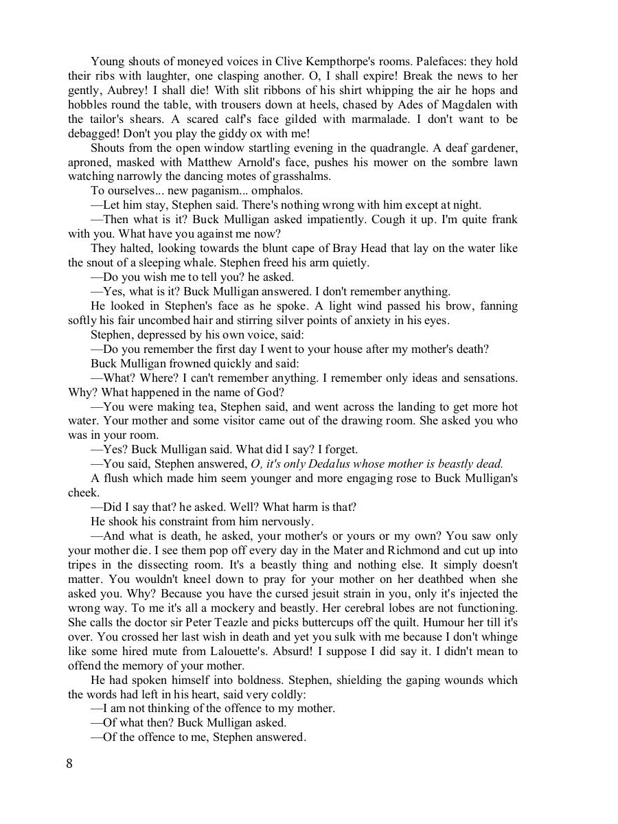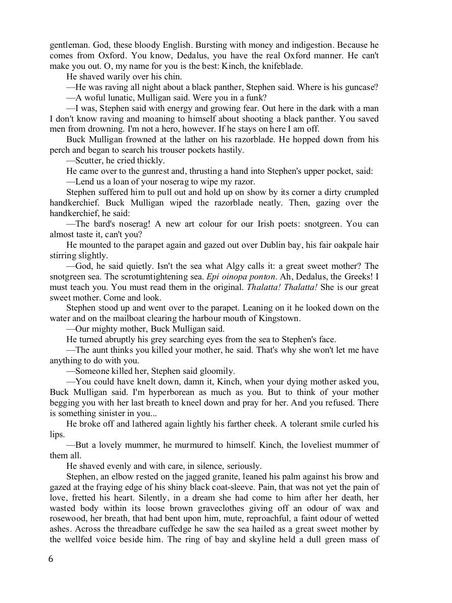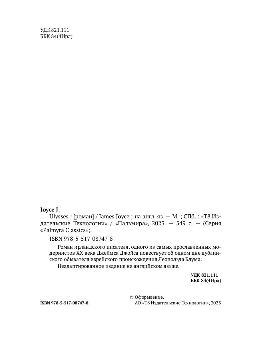 Роман ирландского писателя, одного из самых прославленных модернистов XX века Джеймса Джойса повествует об одном дне дублинского обывателя еврейского происхождения Леопольда Блума.