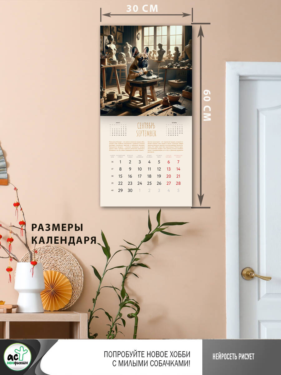 Милые собачки разных пород помогут вам выбрать новое хобби и раскрыть творческий потенциал. Также в календаре есть удобная календарная сетка: названия месяцев и дней недели на русском и английском языках, нумерация недель, предыдущие и следующие месяцы.| Издательство | Издательство "АСТ" |