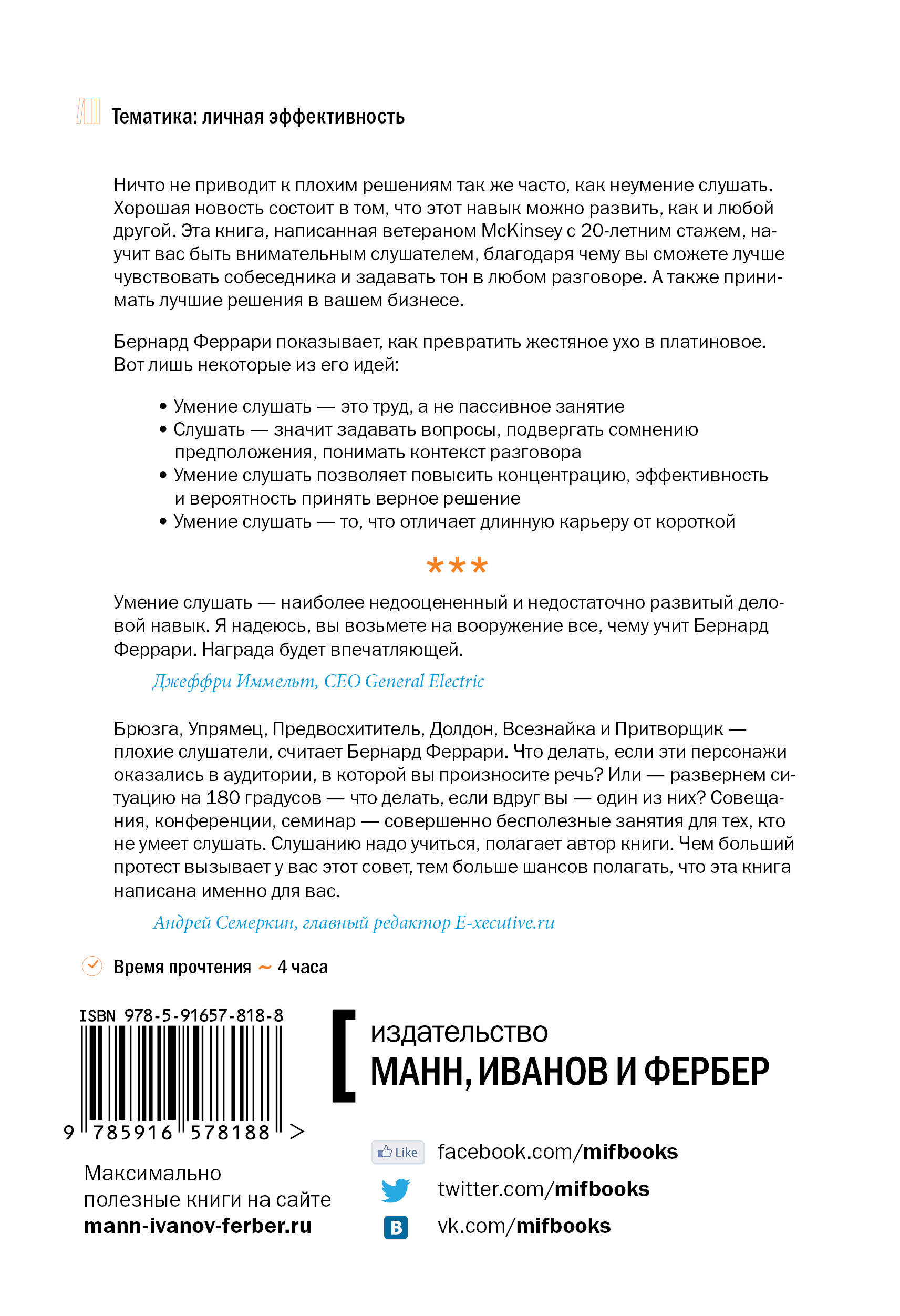 Аннотация: Умение слушать. Ключевой навык менеджера.