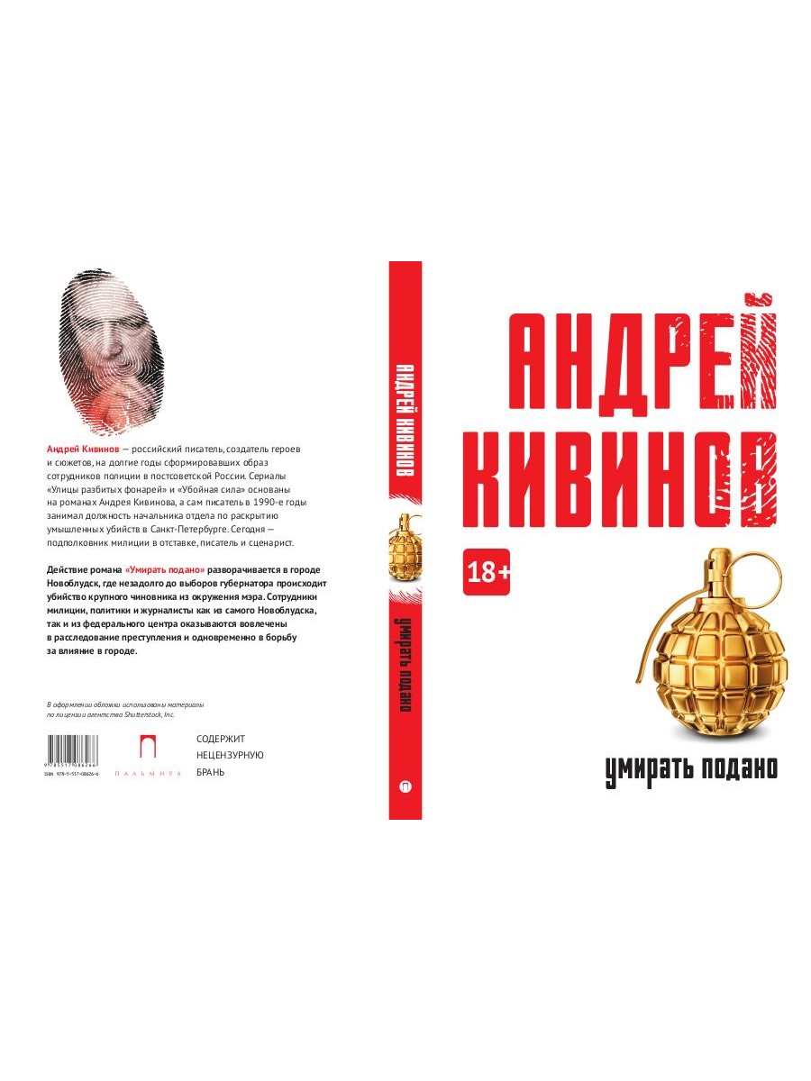 Андрей Кивинов - российский писатель, создатель героев и сюжетов, на долгие годы сформировавших образ сотрудников полиции в постсоветской России. Сериалы "Улицы разбитых фонарей" и "Убойная сила" основаны на романах Андрея Кивинова, а сам писатель в 1990-е годы занимал должность начальника отдела по раскрытию умышленных убийств в Санкт-Петербурге. Сегодня - подполковник милиции в отставке, писатель и сценарист. Действие романа "Умирать подано" разворачивается в городе Новоблудск, где незадолго до выборов губернатора происходит убийство крупного чиновника из окружения мэра. Сотрудники милиции, политики и журналисты как из самого Новоблудска, так и из федерального центра оказываются вовлечены в расследование преступления и одновременно в борьбу за влияние в городе.| Издательство | Т8 RUGRAM |
