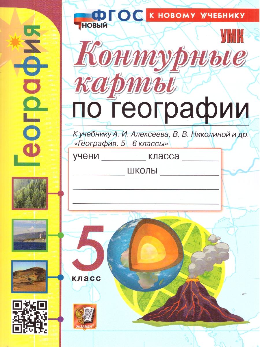 КОНТУРНЫЕ КАРТЫ. ГЕОГРАФИЯ. 5 КЛАСС. К учебнику А. И. Алексеева, В. В. Николиной и др. «География. 5-6 классы». Издание шестнадцатое, переработанное и дополненное. ФГОС НОВЫЙ (к новому учебнику).| Издательство | Издательство «Экзамен» |