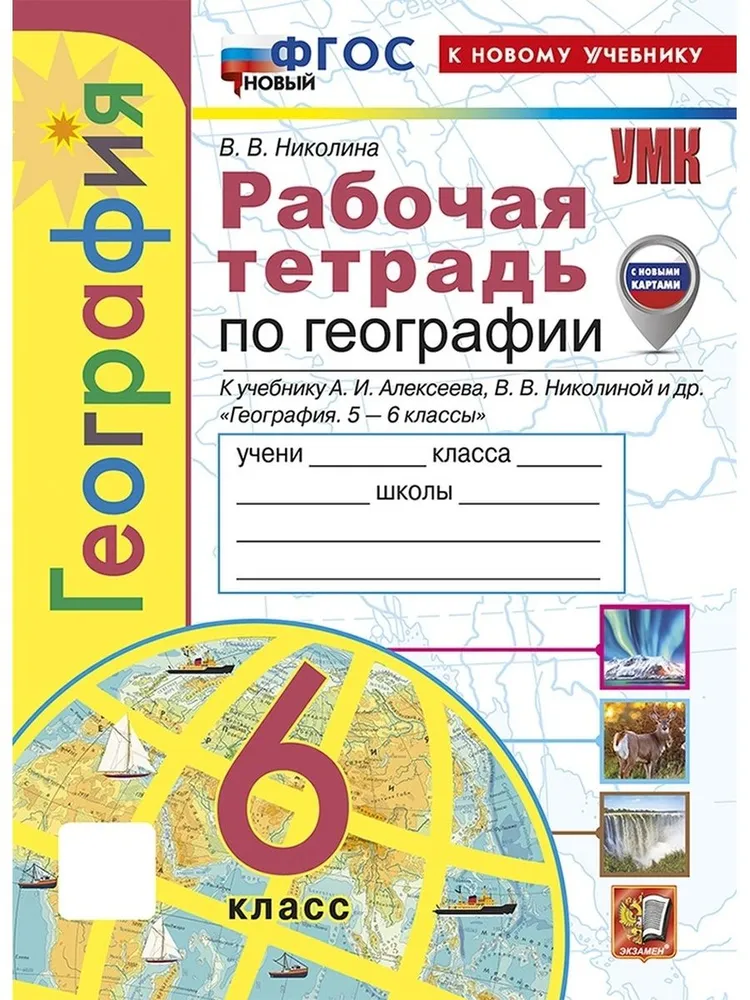 ГЕОГРАФИЯ. 6 КЛАСС. РАБОЧАЯ ТЕТРАДЬ С КОМПЛЕКТОМ КОНТУРНЫХ КАРТ. К учебнику А. И. Алексеева, В. В. Николиной и др. «География. 5-6 классы». Издание одиннадцатое, переработанное и дополненное. ФГОС НОВЫЙ (к новому учебнику).| Издательство | Издательство «Экзамен» |