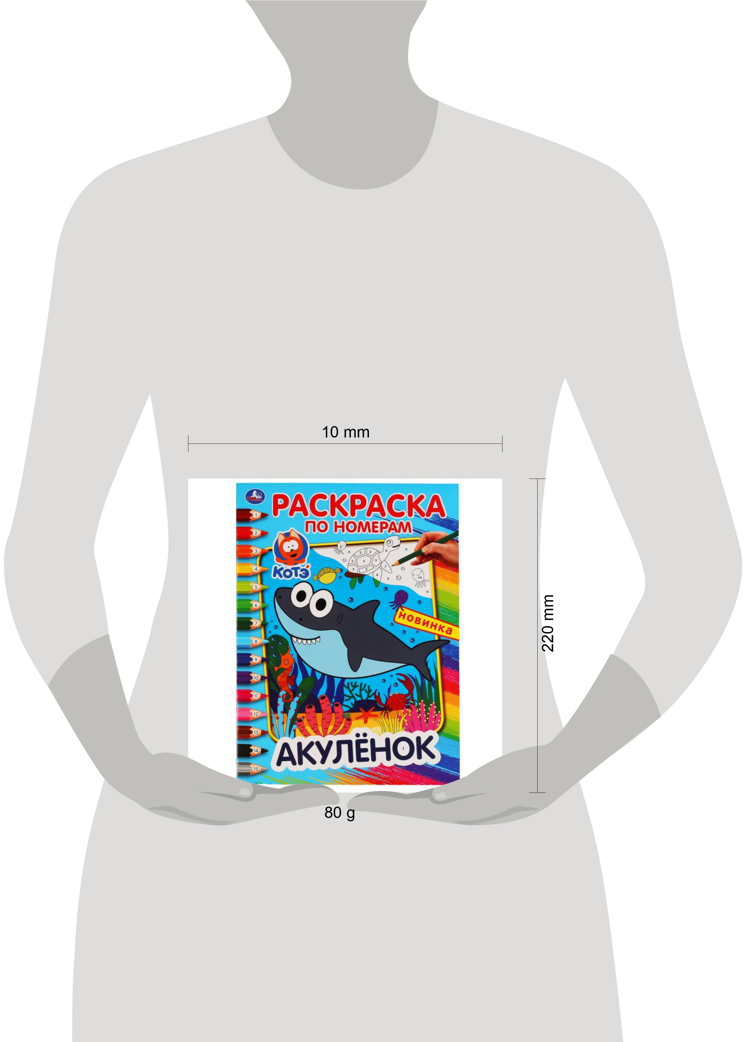 "УМКА". АКУЛЕНОК (РАСКРАСКА ПО НОМЕРАМ А4). ФОРМАТ: 214Х290 ММ. ОБЪЕМ: 16 СТР. в кор.50шт