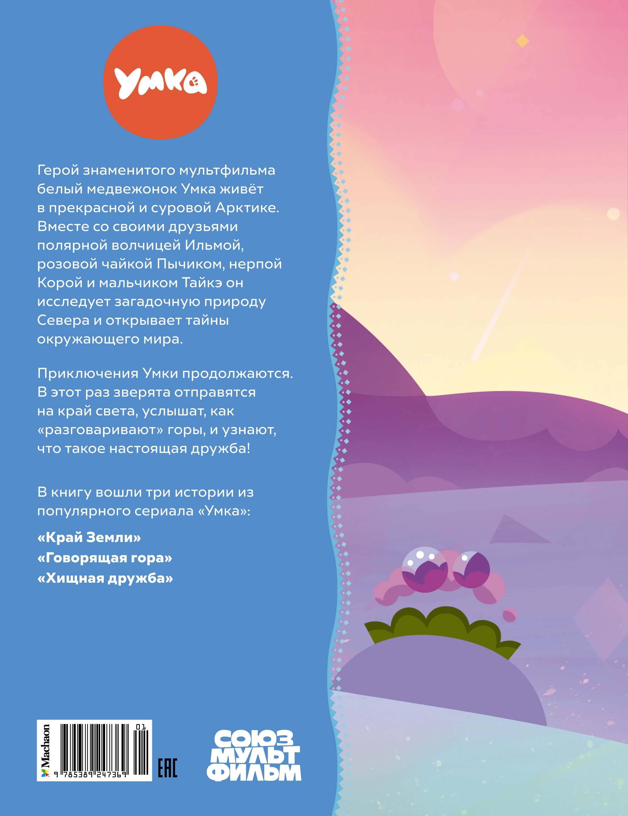 Герой знаменитого мультфильма белый медвежонок Умка живёт в прекрасной и суровой Арктике. Вместе со своими друзьями полярной волчицей Ильмой, розовой чайкой Пычиком, нерпой Корой и мальчиком Тайкэ он исследует загадочную природу Cевера и открывает тайны окружающего мира. Приключения Умки продолжаются. В этот раз зверята отправятся на край света, услышат, как "разговаривают" горы, и узнают, что такое настоящая дружба! В книгу вошли три истории из популярного сериала "Умка": "Край Земли" "Говорящая гора" "Хищная дружба"| Издательство | Азбука-Аттикус Издат.группа ООО |