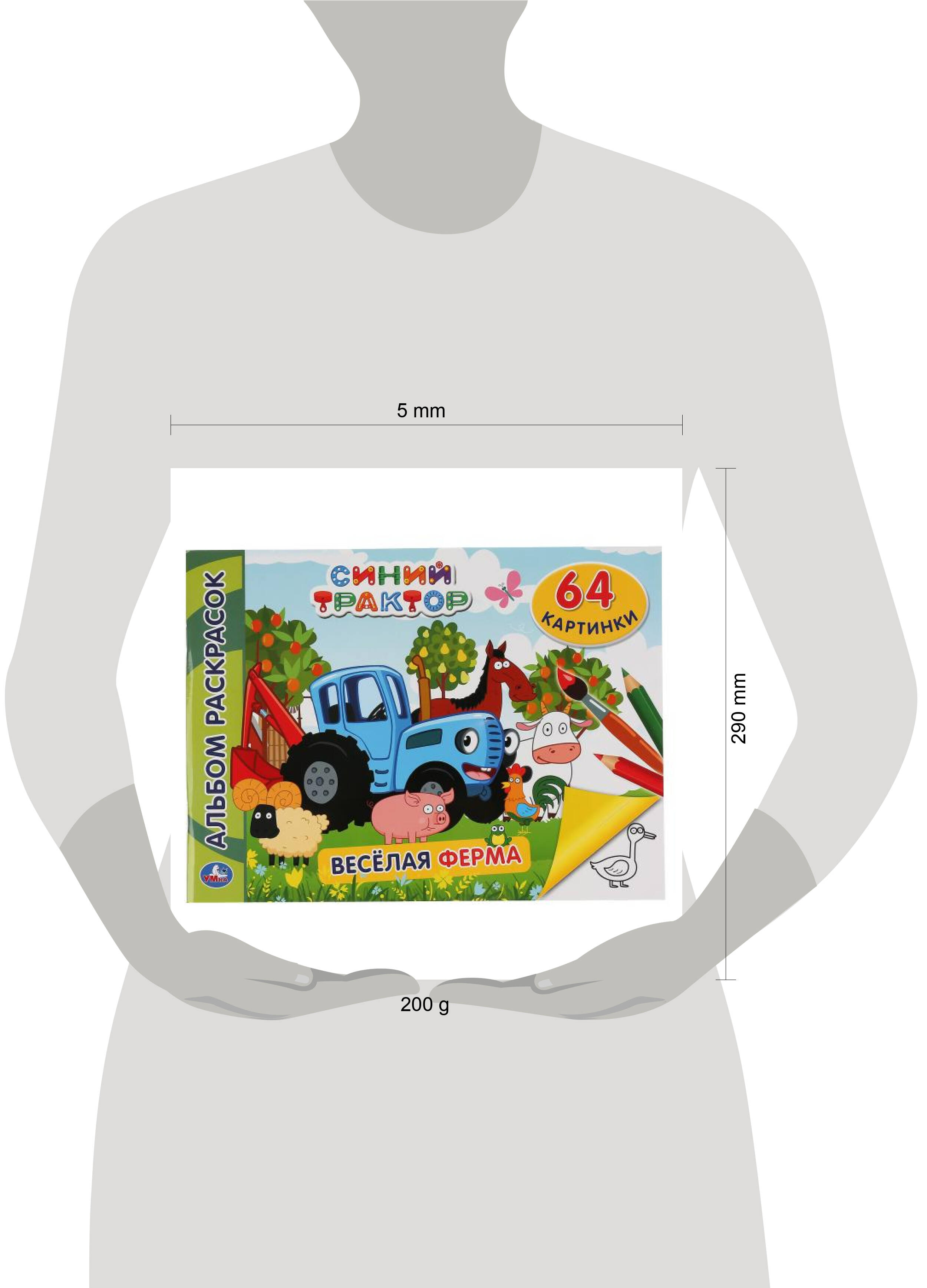 Альбом раскрасок "Синий трактор. Весёлая ферма" ТМ "УМка" станет прекрасным подарком для ребёнка: - 64 картинки - тщательно прорисованные картинки для раскрашивания (жирный контур) - любимые персонажи Раскрашивание интересных иллюстраций с чётким толстым контуром не только скрасит досуг малыша, но и подготовит его к школе. Благодаря удобному формату раскраску можно взять с собой. Альбом раскрасок ТМ "УМка" тренирует руку к письму и развивает: - моторику - сенсорное развитие - творческое мышление - внимание - речь Объём: 64 стр. Формат: 285 х 210 мм (А4). Материал: бумага офсетная. Рекомендовано детям от 1 года.| Издательство | СИМБАТ ООО |