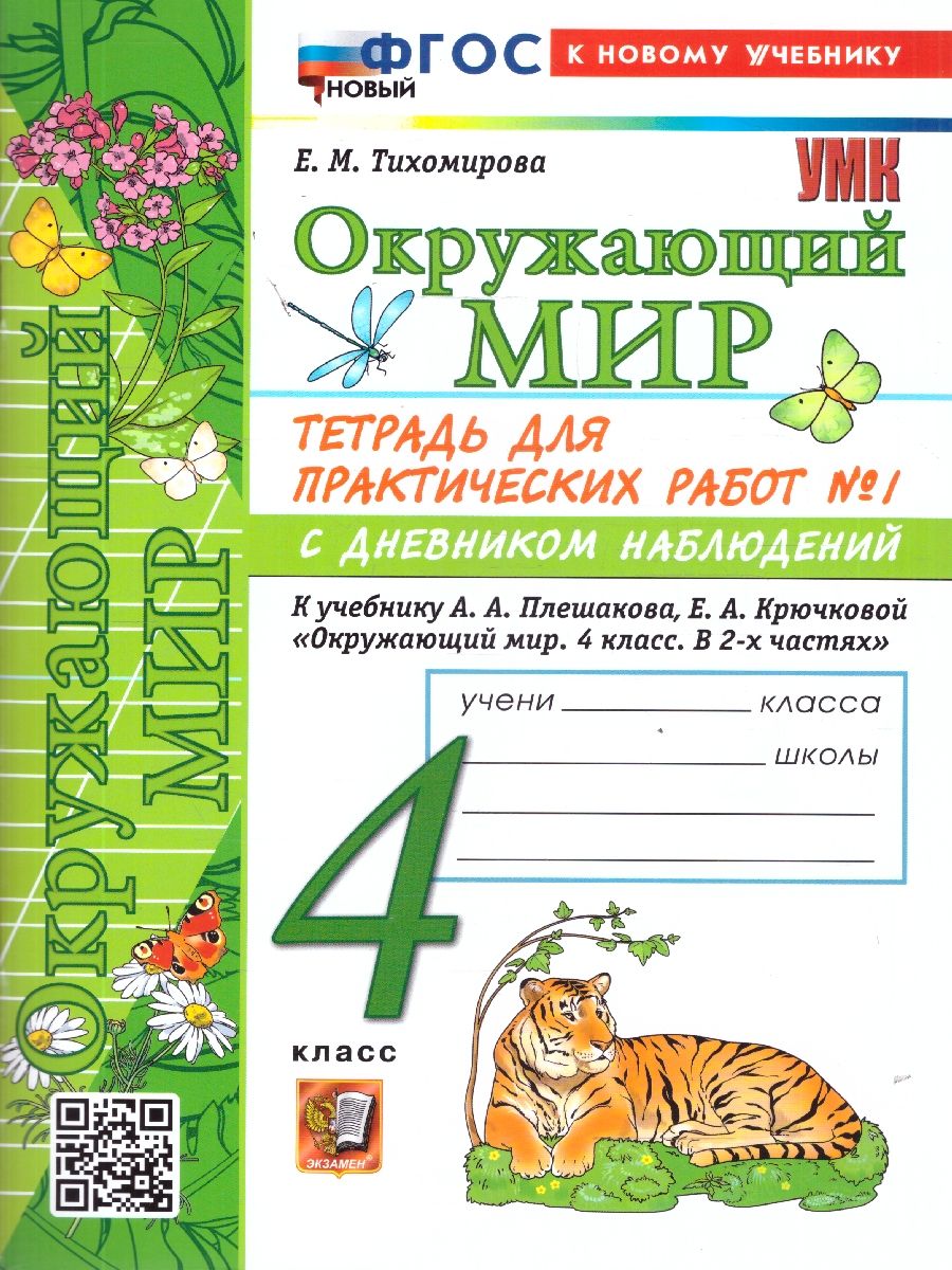 ТЕТРАДЬ ДЛЯ ПРАКТИЧЕСКИХ РАБОТ № 1 С ДНЕВНИКОМ НАБЛЮДЕНИЙ ПО ПРЕДМЕТУ «ОКРУЖАЮЩИЙ МИР». 4 КЛАСС. К учебнику А. А. Плешакова, Е. А. Крючковой «Окружающий мир. 4 класс. В 2-х частях. Часть 1». Издание шестнадцатое, переработанное и дополненное. ФГОС НОВЫЙ (к новому учебнику).| Издательство | Издательство «Экзамен» |