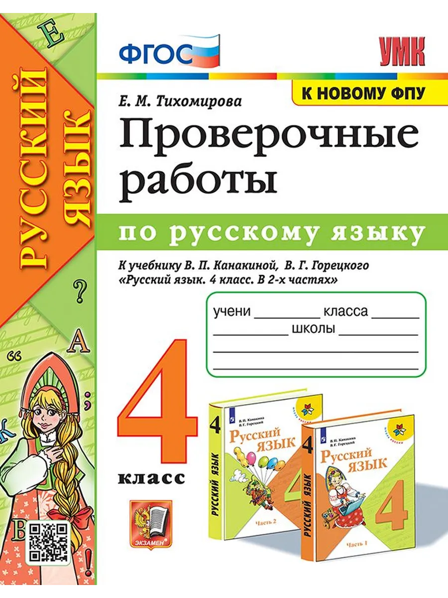 УМКн. ПРОВЕРОЧНЫЕ РАБОТЫ ПО РУС. ЯЗЫКУ. 4 КЛАСС. КАНАКИНА, ГОРЕЦКИЙ. ФГОС к новому ФПУ