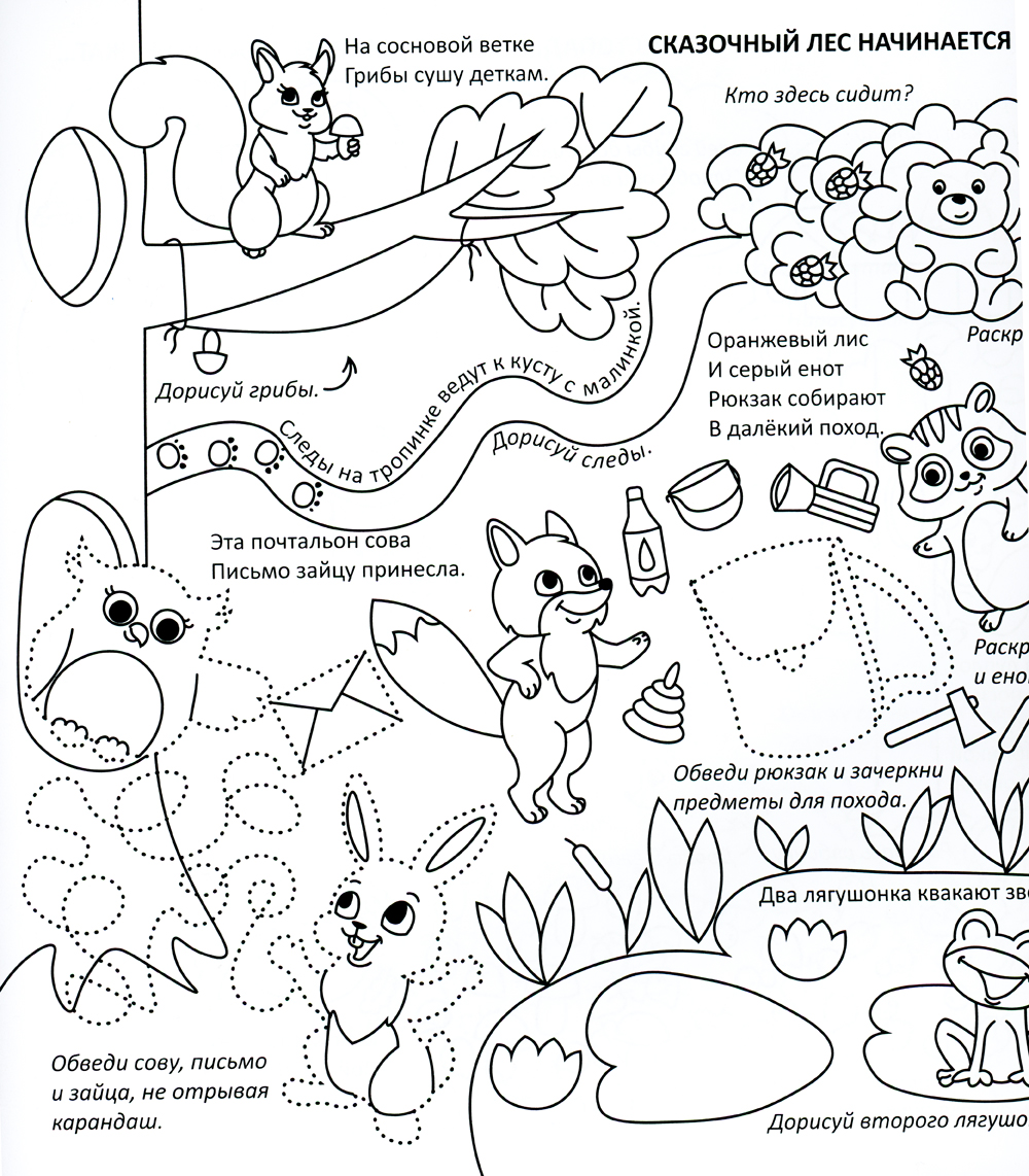 Раскраска "Лесные загадки" - это раскраска-виммельбух. На каждой странице предложены картинки с большим количеством деталей. На странице даны задания для ребенка: найди, обведи, дорисуй, раскрась, угадай и т.д. Выполняя интересные задания, ребенок будет в игре развивать внимание, усидчивость, смекалку, а также мелкую моторику - навыки, которые очень помогут в школе. Предназначено детям дошкольного и школьного возраста.| Издательство | Учитель |