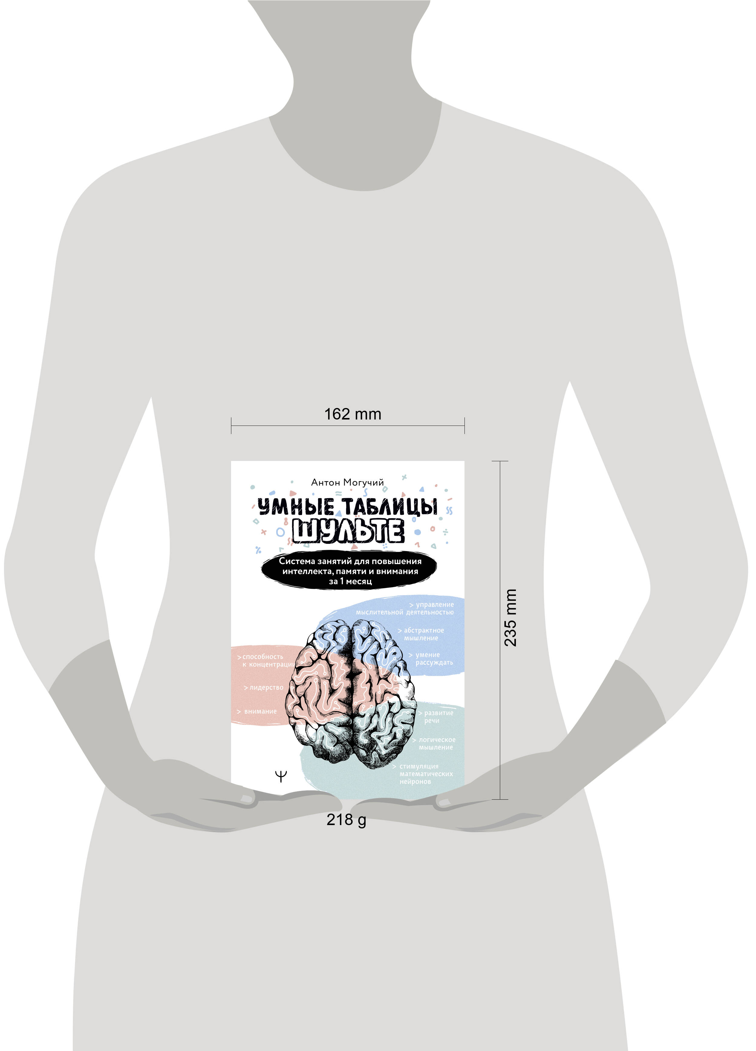 Антон Могучий - автор множества книг-тренажеров для мозга. Уникальные упражнения для развития интеллекта, улучшения памяти, повышения способности к концентрации внимания созданы на основе как классических, так и новейших открытий в области психологии и нейрофизиологии. "Умные Таблицы Шульте. Система занятий для повышения интеллекта, памяти и внимания за 1 месяц" - комплексный тренажер для развития интеллектуальных способностей, внимания и памяти. Минимум теории и максимум полезных упражнений для эффективной тренировки мозга! Особенности книги • "Минимум теории, максимум практики": издание представляет собой рабочую тетрадь с комплексом упражнений для развития внимания, памяти и интеллекта. • Упражнения подходят для читателей любого возраста - от школьников до пенсионеров. • Методика А. Могучего основана на таблицах Шульте - знаменитого немецкого психиатра. • Регулярное выполнение упражнений поможет достичь существенных результатов уже в течение месяца. Суммарный тираж книг автора - более 400 000 экз. Книга большого формата, мягкая обложка. Плотная бумага - вы можете выполнять задания прямо в книге, стирать написанное и использовать ее снова через какое-то время.| Издательство | Издательство "АСТ" |