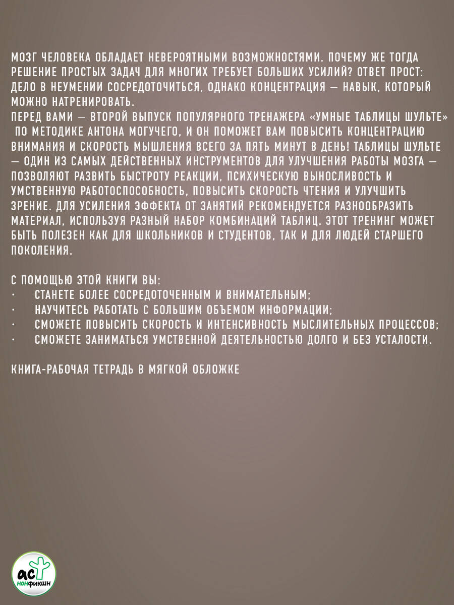 Аннотация: Умные Таблицы Шульте. Выпуск 2. Новые тренировки для повышения интеллекта, памяти и внимания